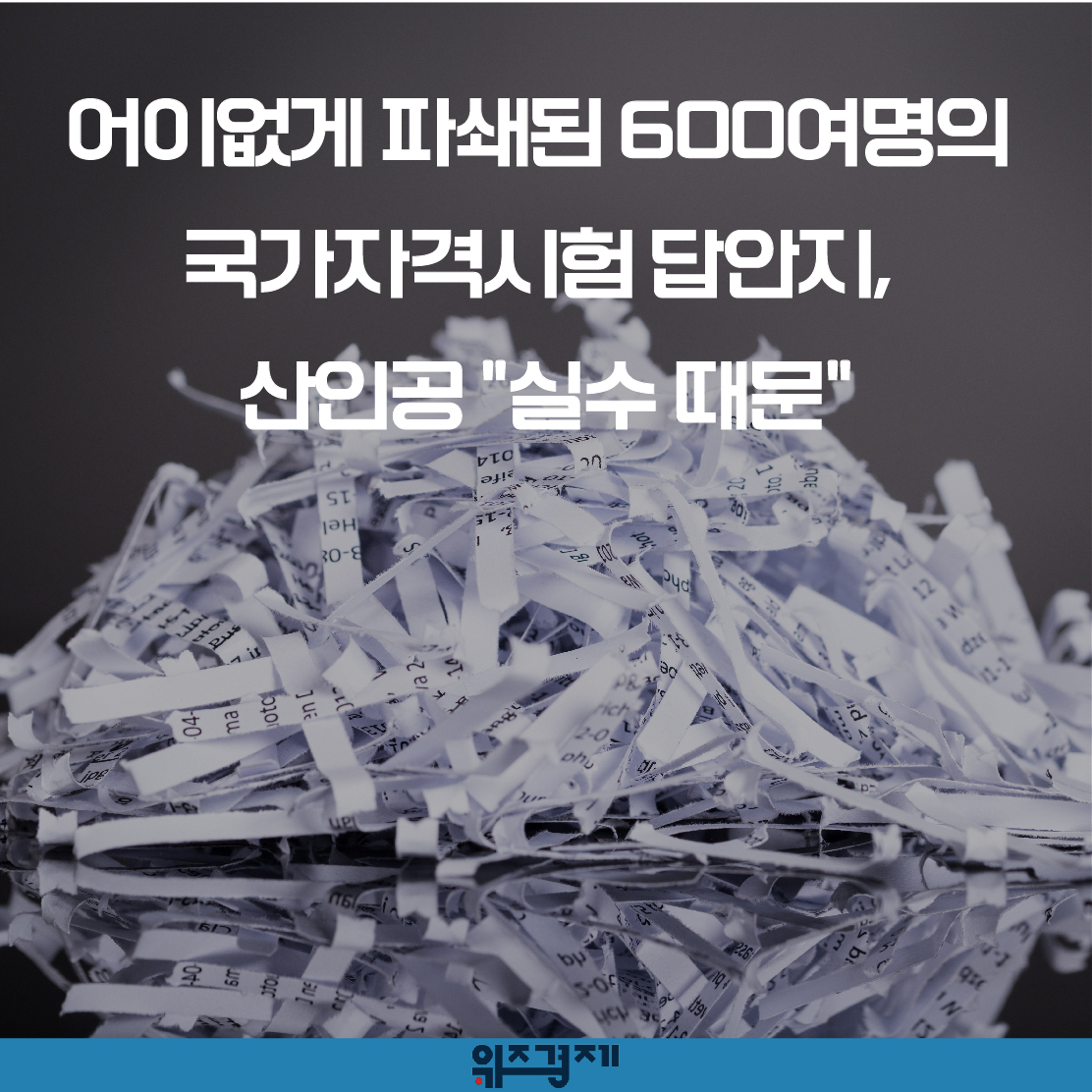 [위즈경제] 이정원 기자 =지난달 국가자격시험에 응시한 600여명의 답안지가 채점도 되기 전에 파쇄된 것으로 드러났습니다.