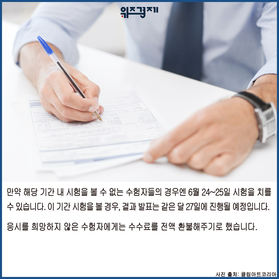 응시를 희망하지 않은 수험자에게는 수수료를 전액 환불해주기로 했습니다.