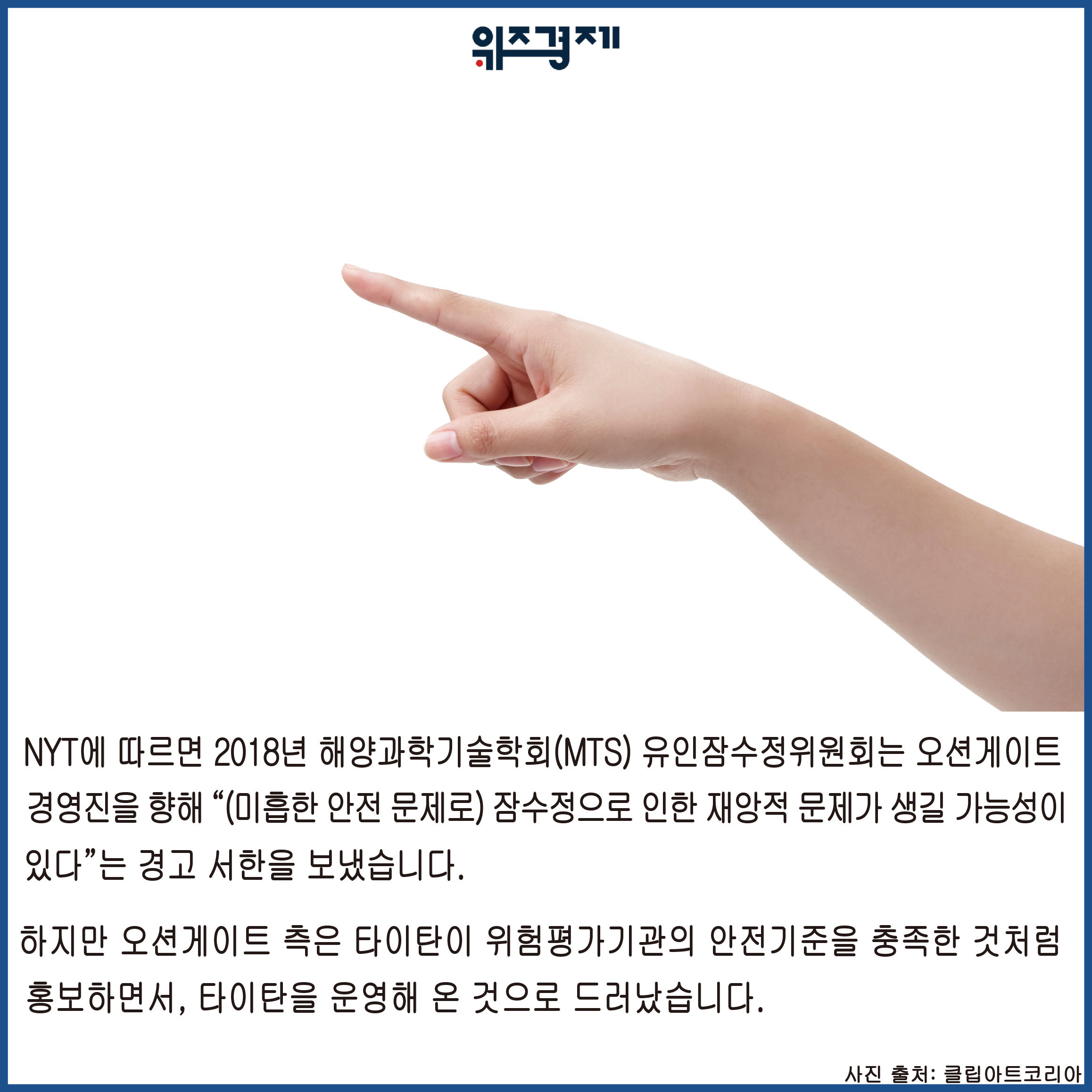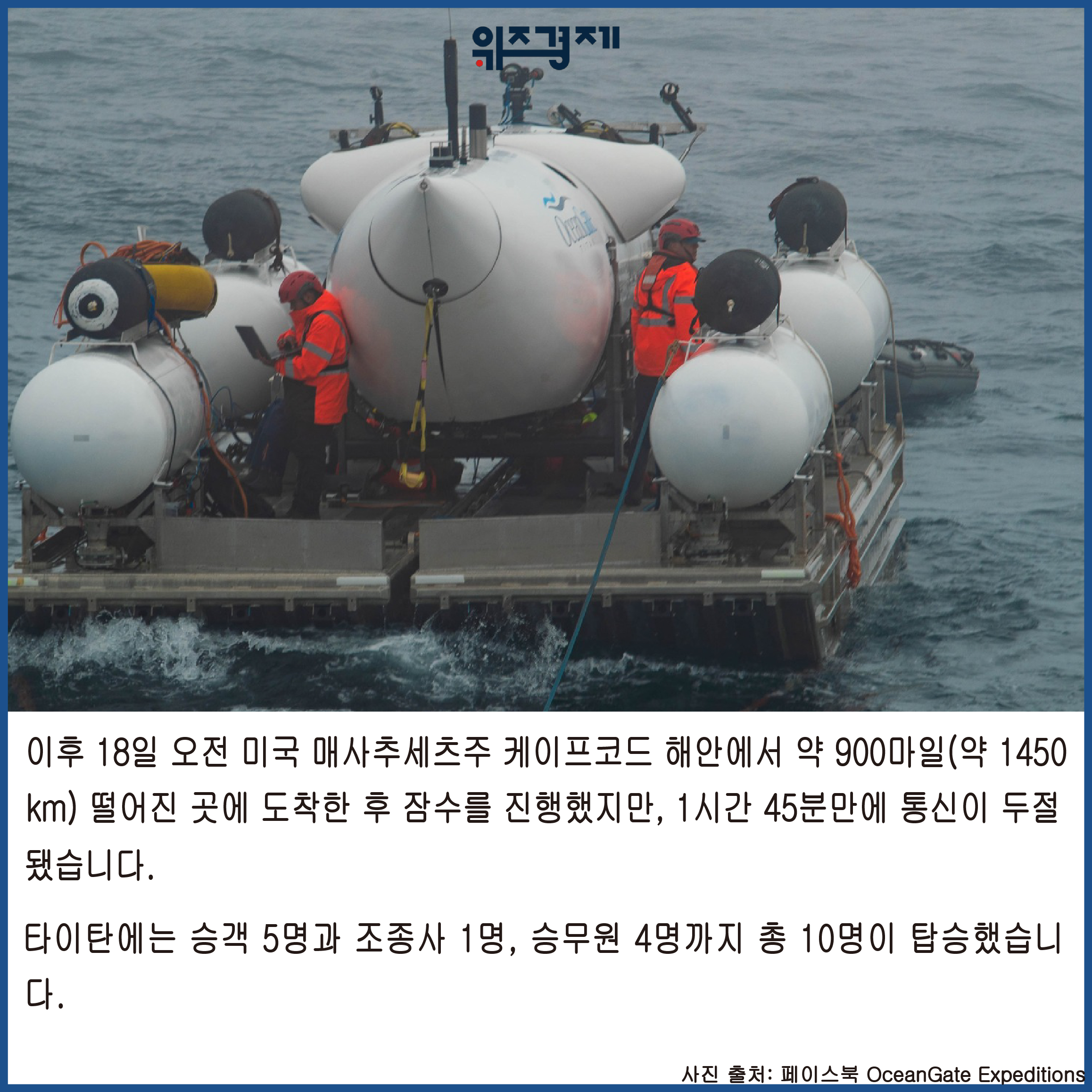 해양과학기술학회(MTS) 유인잠수정위원회는 오션게이트 경영진을 향해 “(미흡한 안전 문제로) 잠수정으로 인한 재앙적 문제가 생길 가능성이