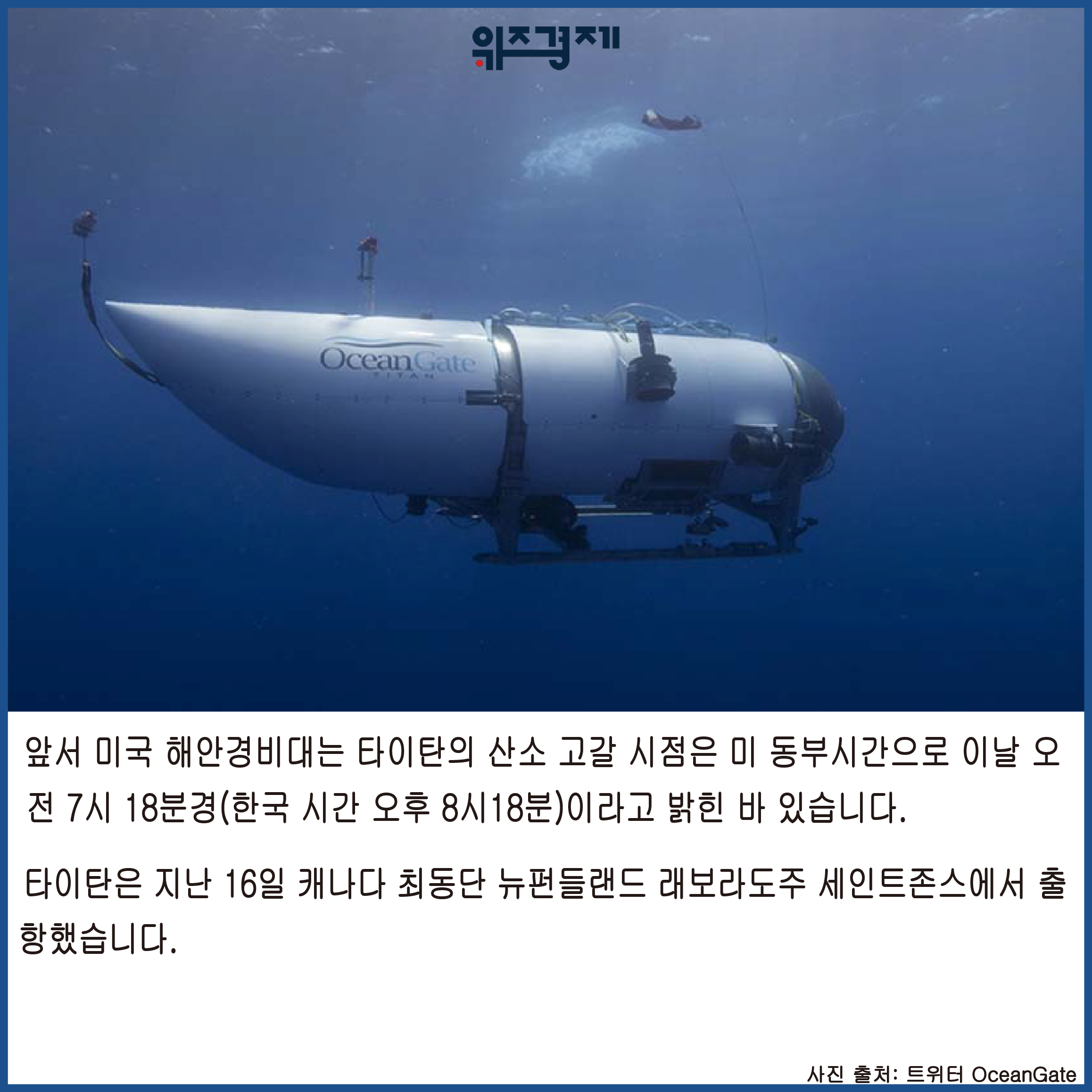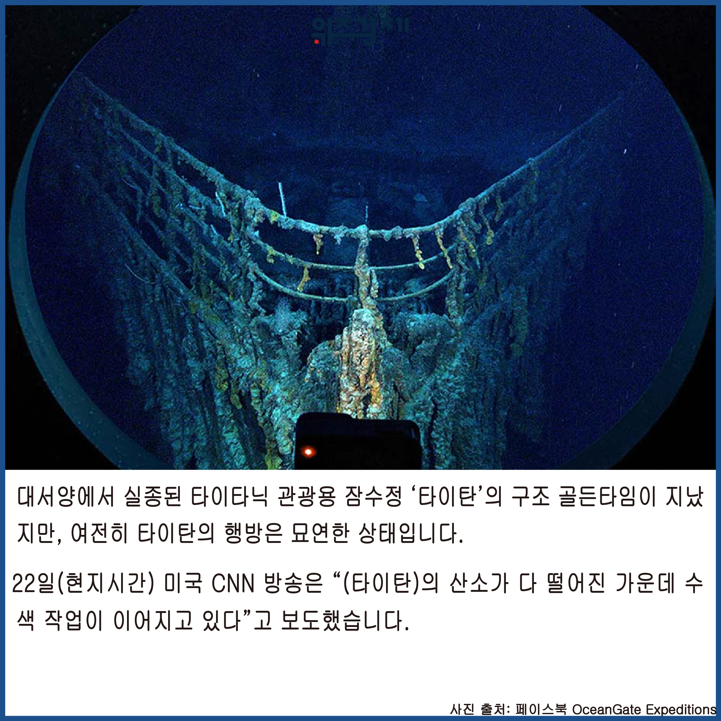 [위즈경제] 이정원 기자 =대서양에서 실종된 타이타닉 관광용 잠수정 ‘타이탄’의 구조 골든타임이 지났지만, 여전히 타이탄의 행방은 묘연한 상태입니다.