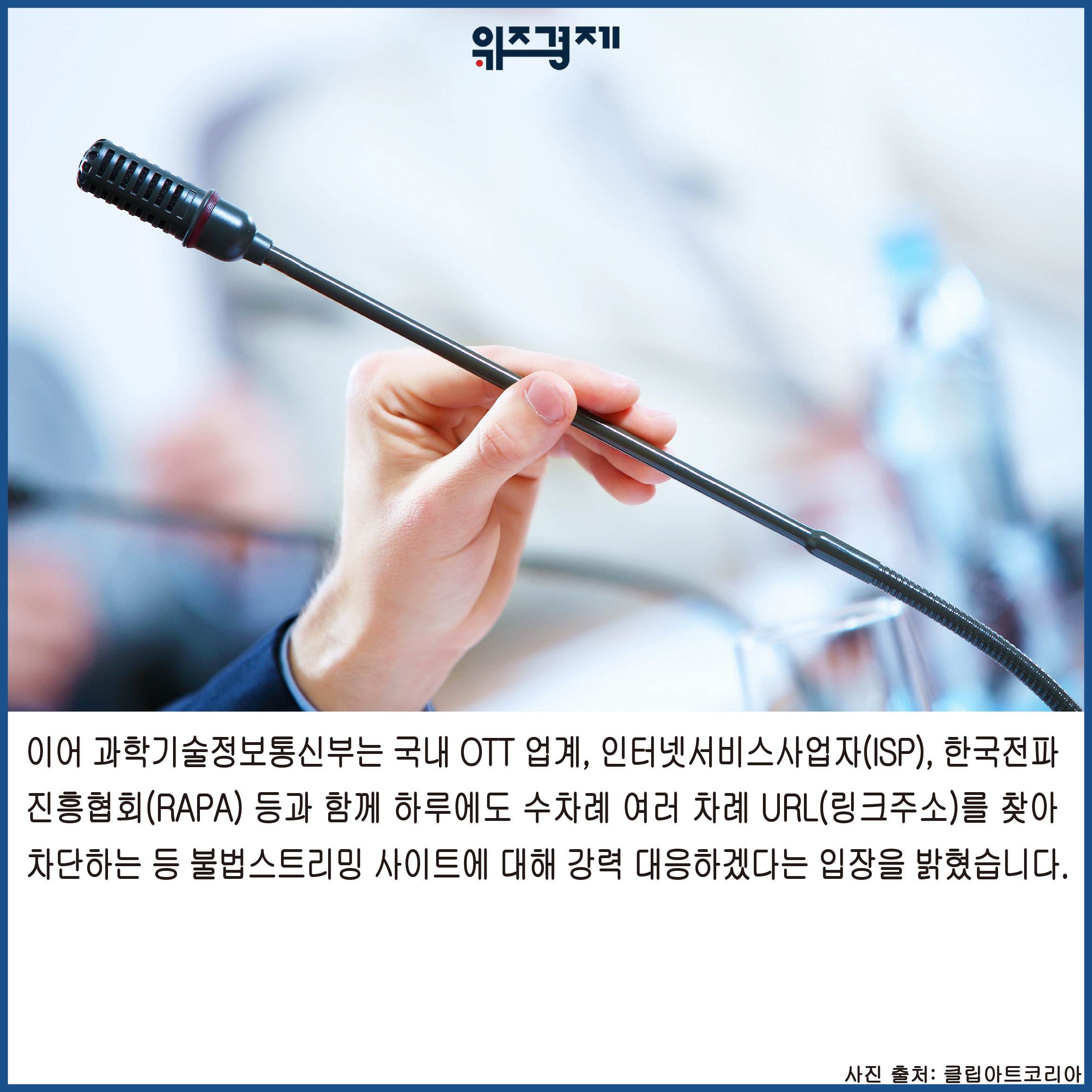 이어 과학기술정보통신부는 국내 OTT 업계, 인터넷서비스사업자(ISP), 한국전파진흥협회(RAPA) 등과 함께 하루에도 수차례 여러 차례 URL(링크주소)를 찾아 차단하는 등 불법스트리밍 사이트에 대해 강력 대응하겠다는 입장을 밝혔습니다.