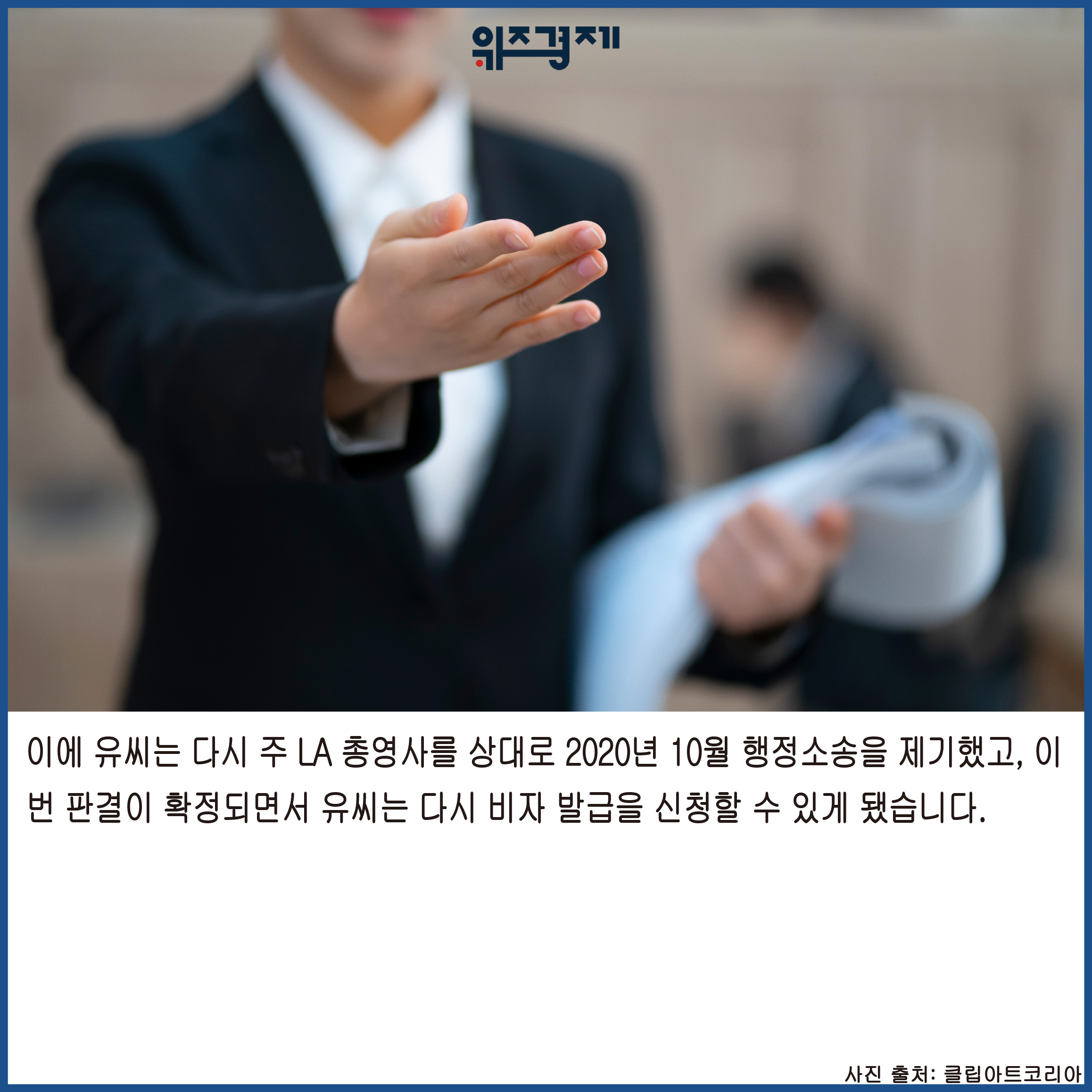 유씨는 다시 주 LA 총영사를 상대로 2020년 10월 행정소송을 제기했고, 이번 판결이 확정되면서 유씨는 다시 비자