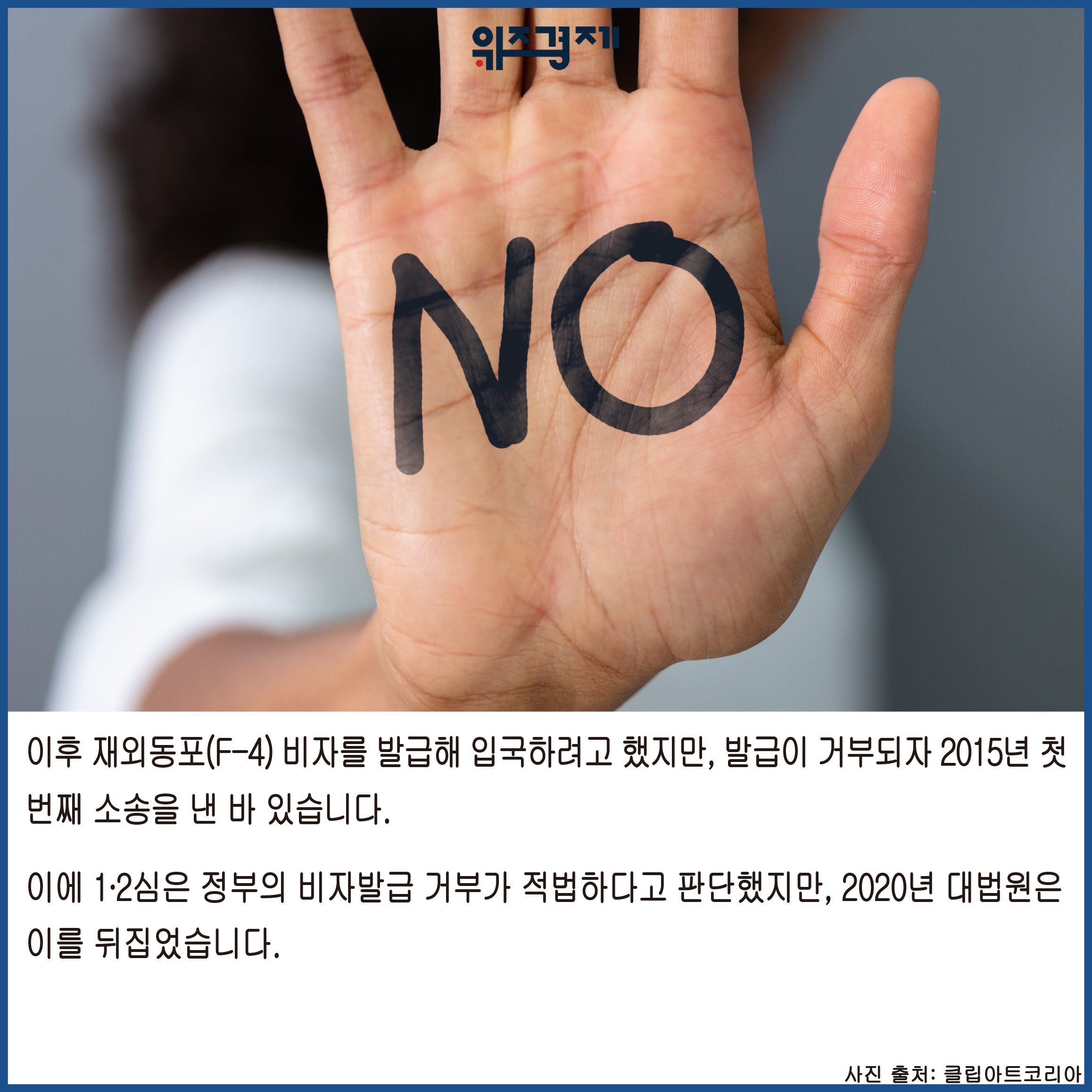 1∙2심은 정부의 비자발급 거부가 적법하다고 판단했지만, 2020년 대법원은 이를 뒤집었습니다.