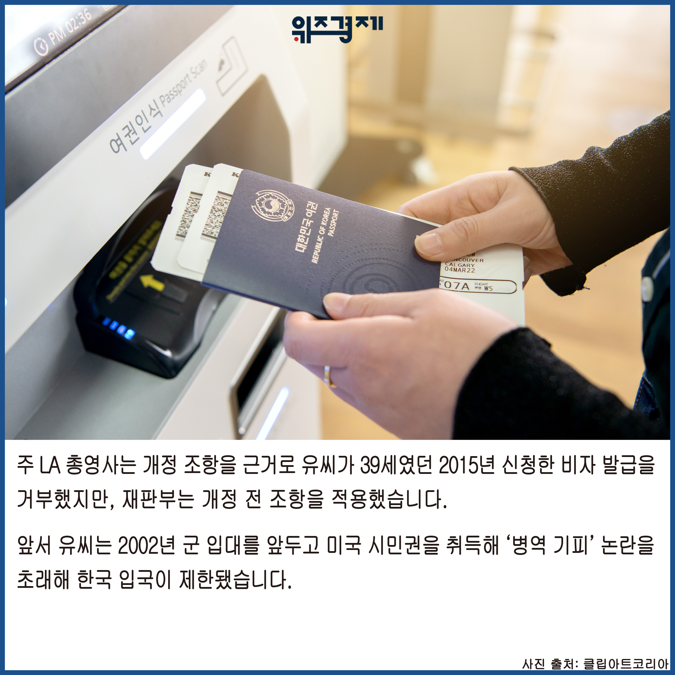 LA 총영사는 개정 조항을 근거로 유씨가 39세였던 2015년 신청한 비자 발급을 거부했지만, 재판부는 개정 전 조항을