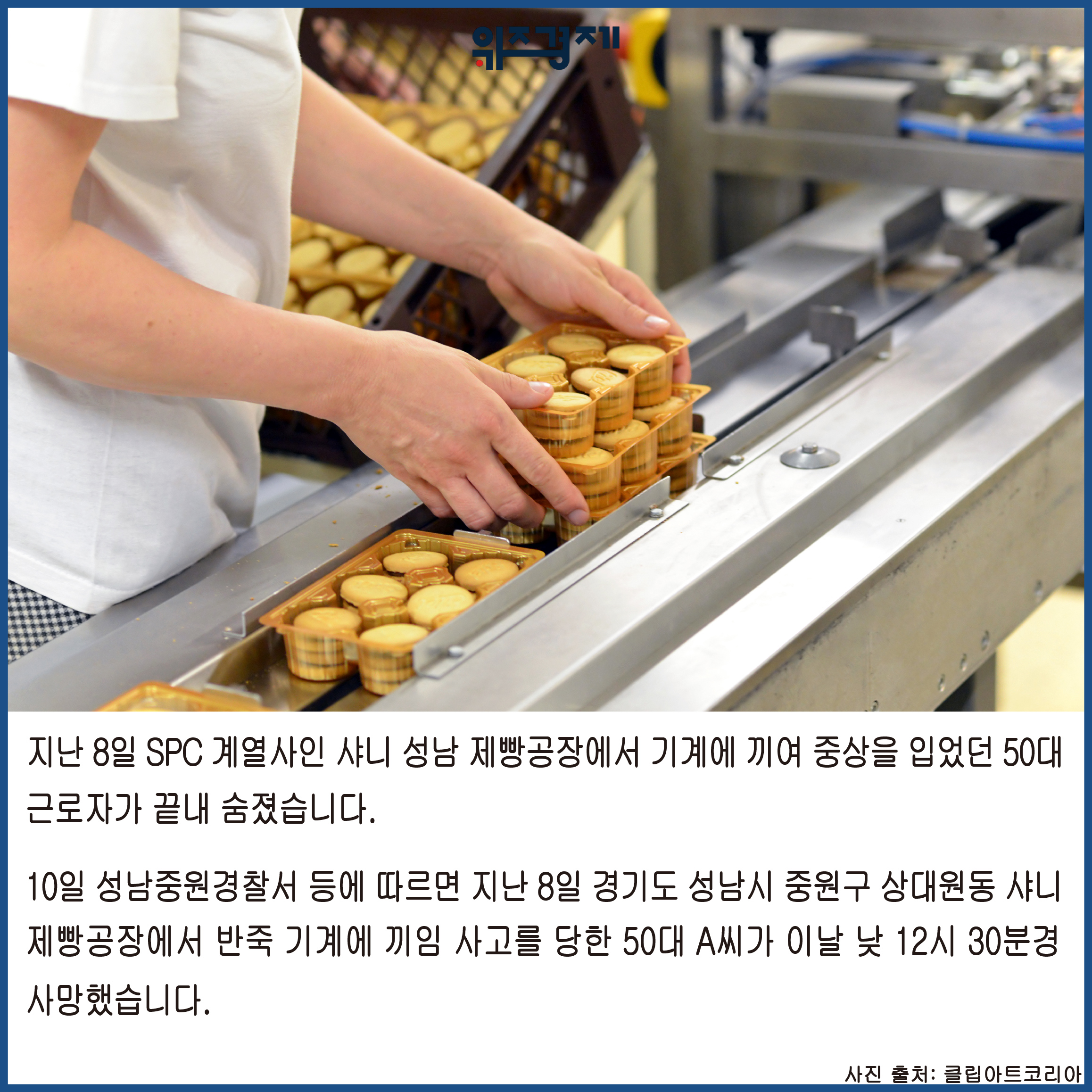 [위즈경제] 조중환 기자 =지난 8일 SPC 계열사인 샤니 성남 제빵공장에서 기계에 끼여 중상을 입었던 50대 근로자가 끝내 숨졌습니다.