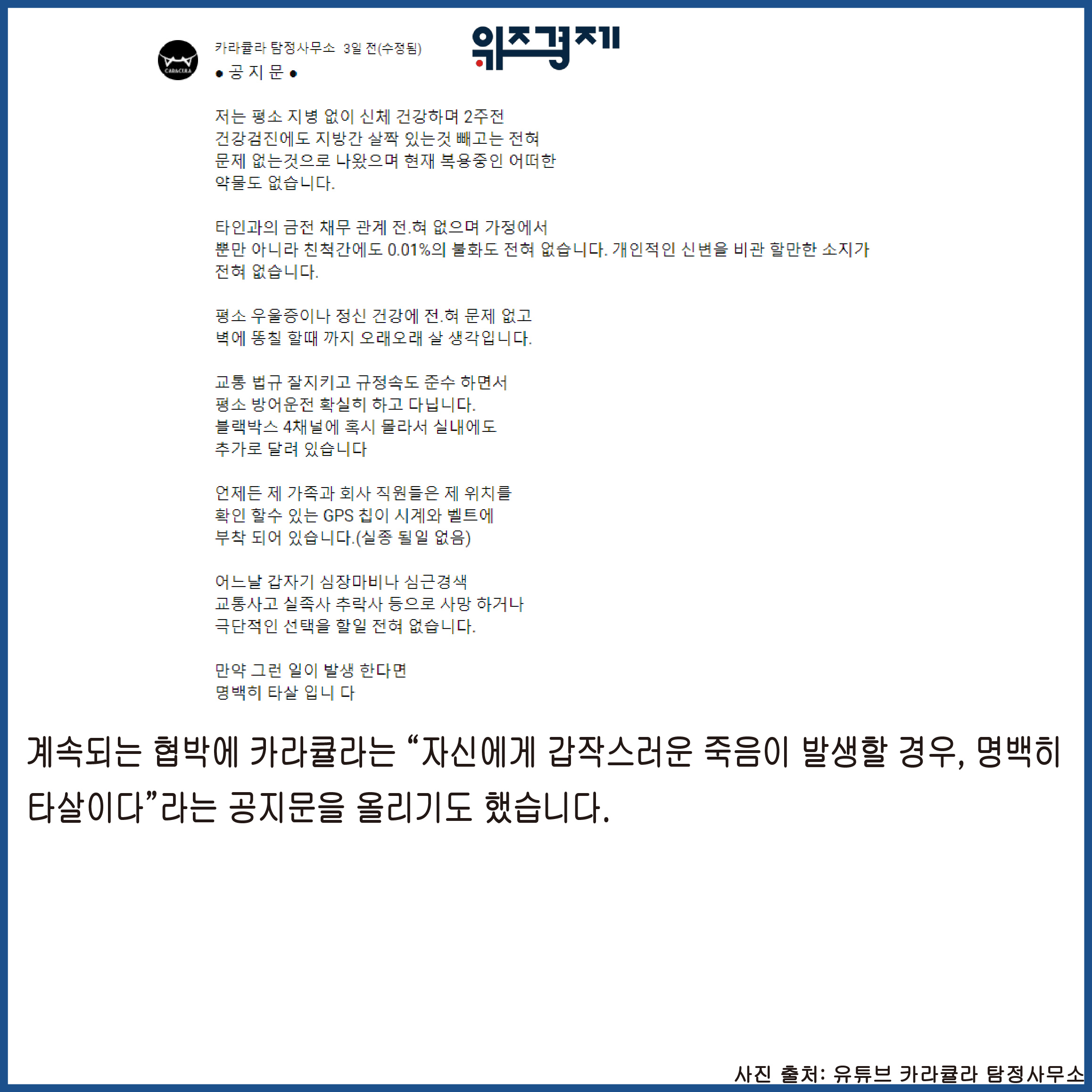 발생할 경우, 명백히 타살이다”라는 공지문을