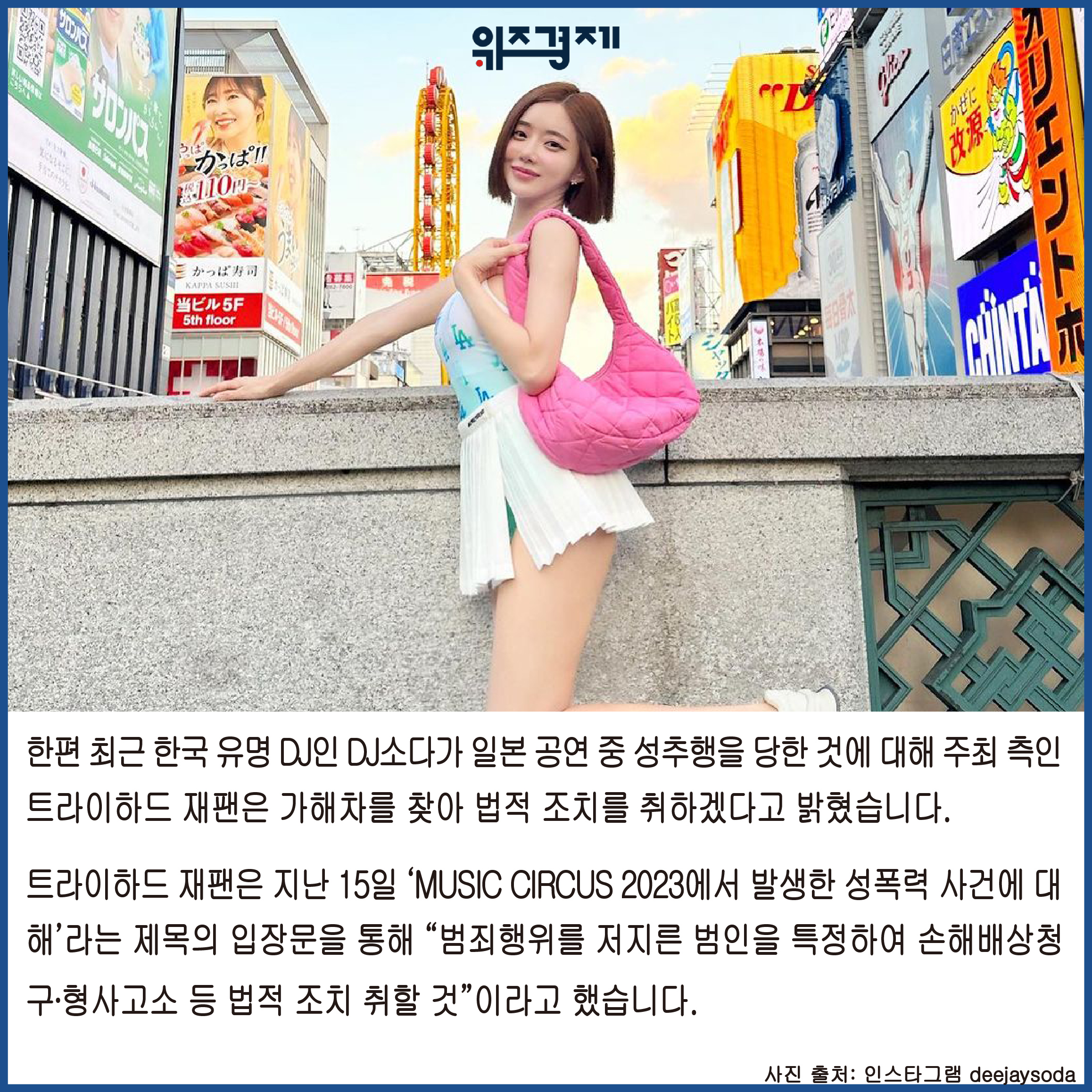 일본 공연 중 성추행을 당한 것에 대해 주최 측인 트라이하드 재팬은 가해차를 찾아 법적 조치를 취하겠다고 밝혔습니다.