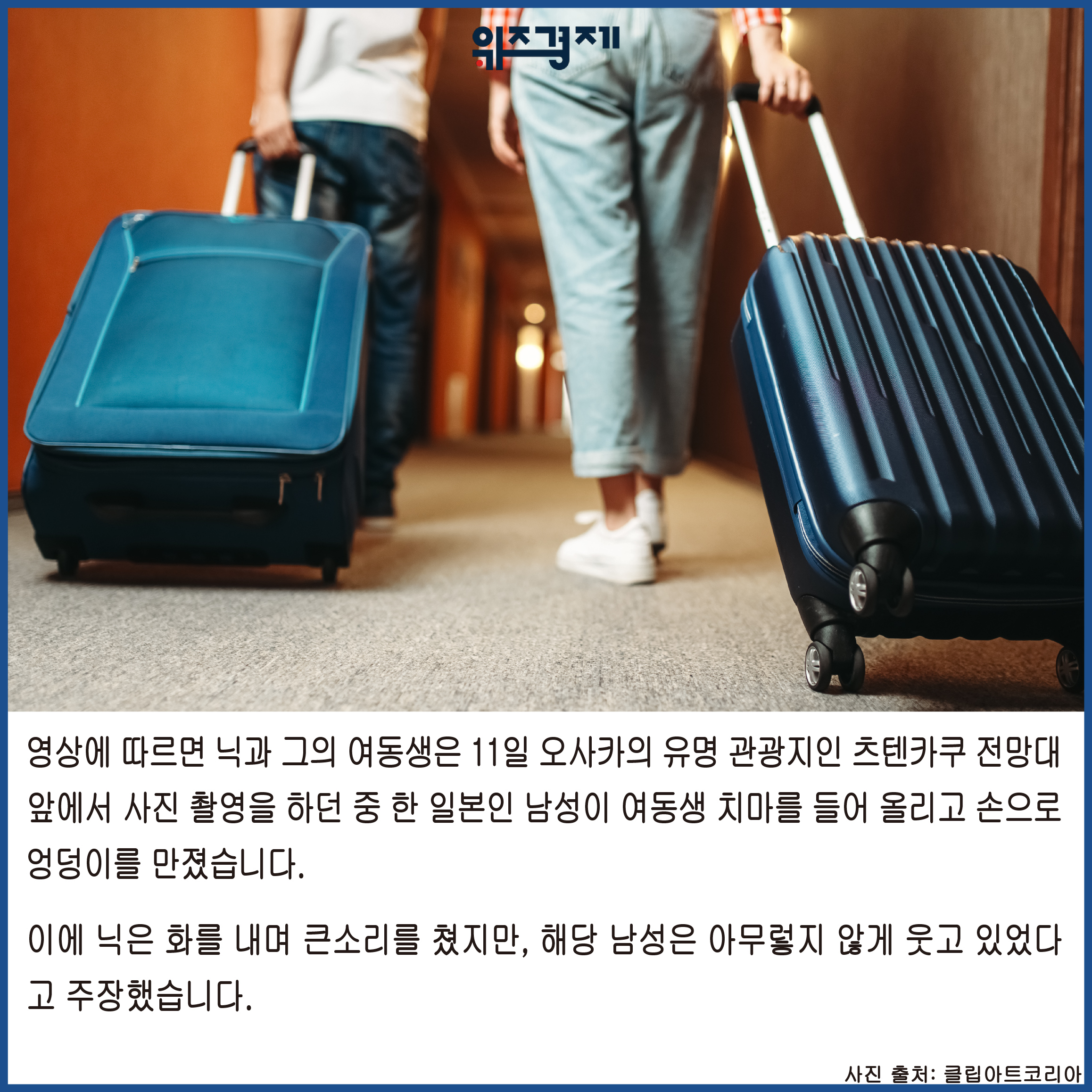 영상에 따르면 닉과 그의 여동생은 11일 오사카의 유명 관광지인 츠텐카쿠