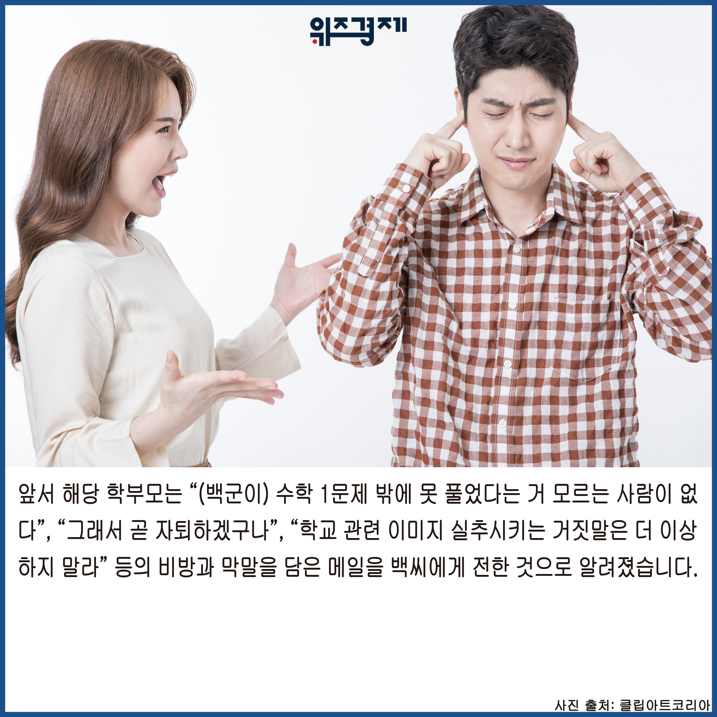 앞서 해당 학부모는 “(백군이) 수학 1문제 밖에 못 풀었다는 거 모르는 사람이 없다”, “그래서 곧