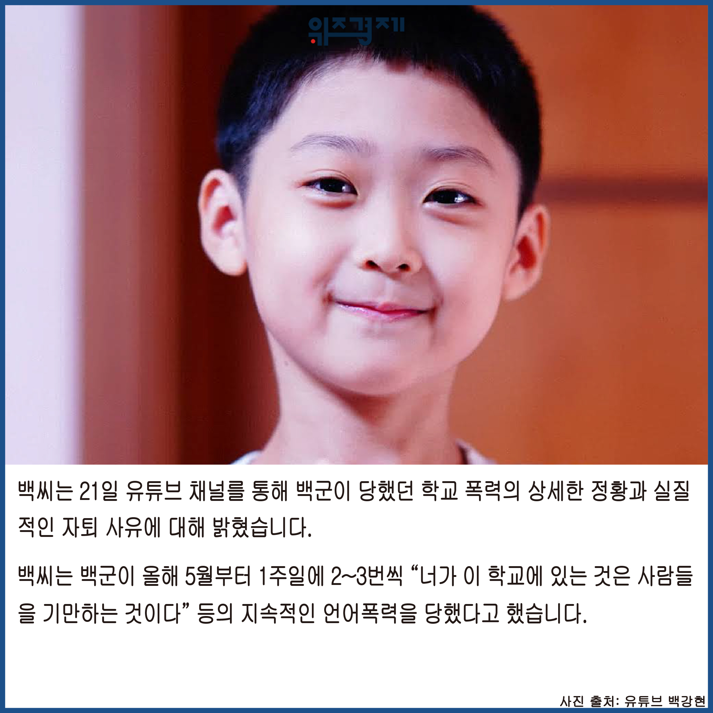 백씨는 21일 유튜브 채널를 통해 백군이 당했던 학교 폭력의 상세한