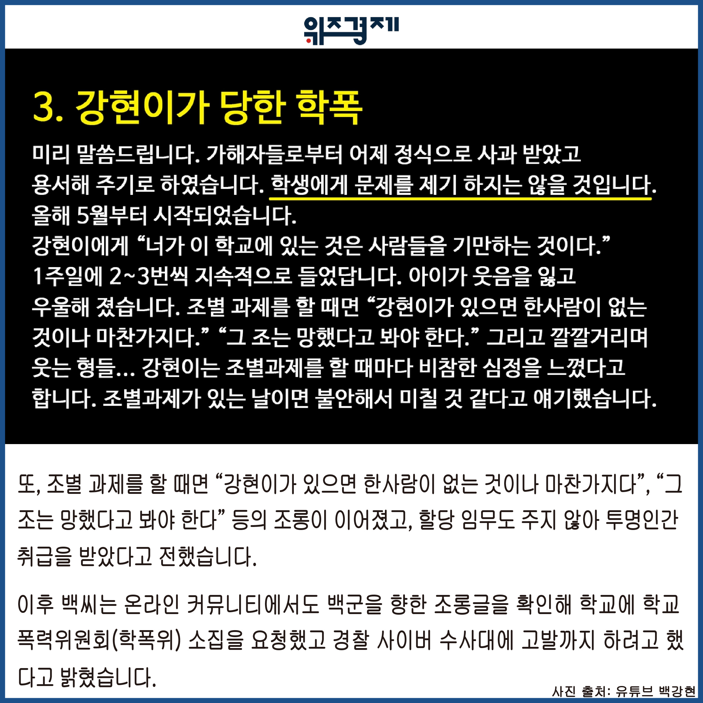 백씨는 “이번 강현이 학폭사건 영상을 올리는데 도화선이