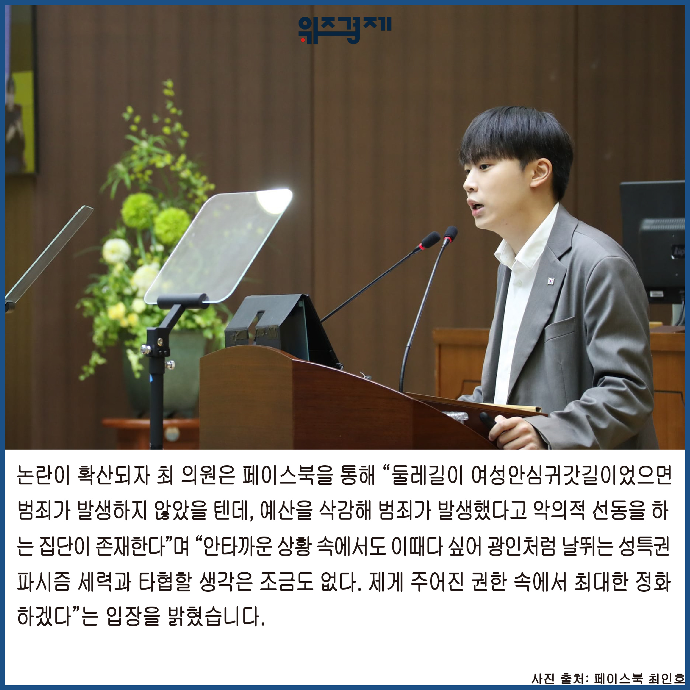 확산되자 최 의원은 페이스북을 통해 “둘레길이 여성안심귀갓길이었으면 범죄가 발생하지 않았을