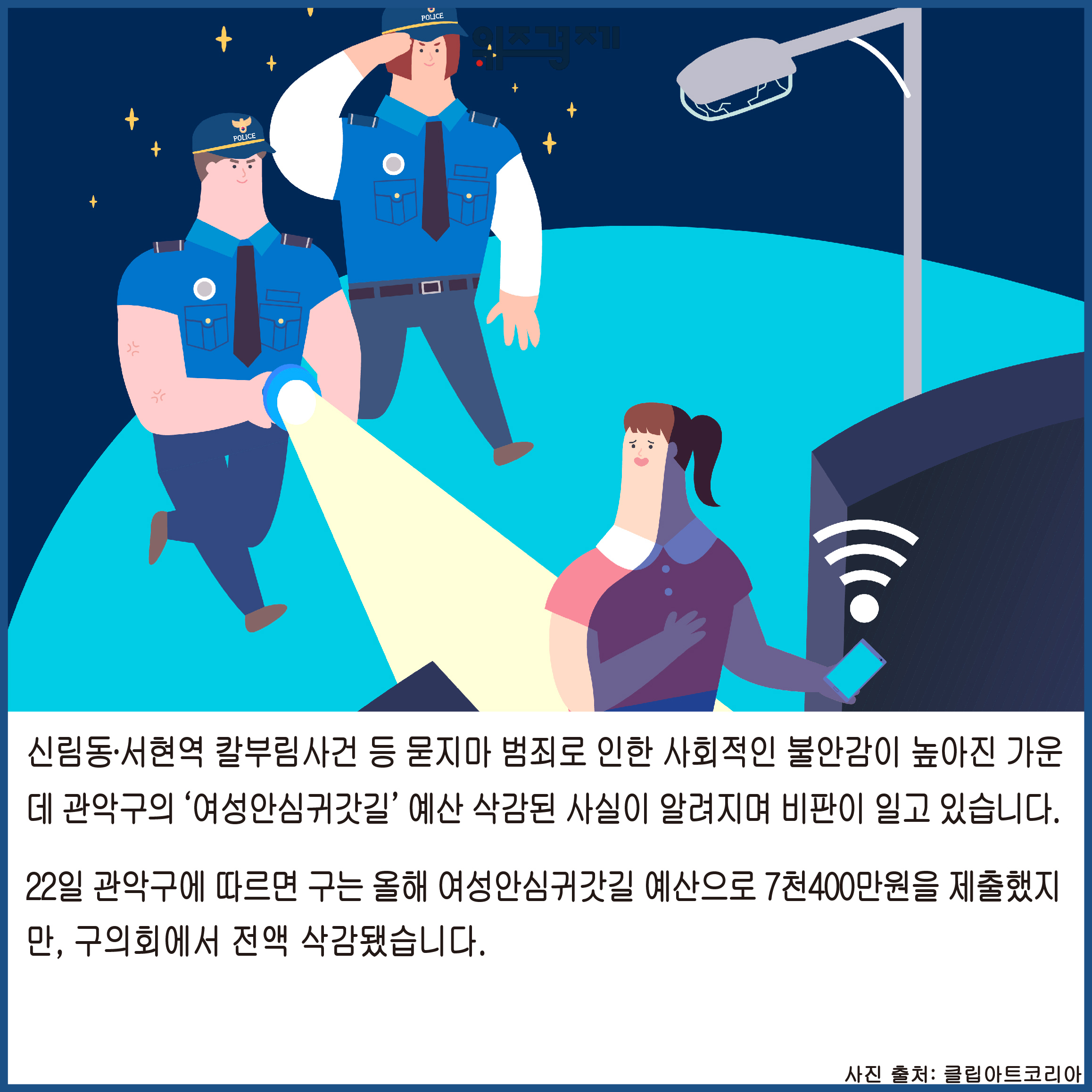 [위즈경제] 이정원 기자 =신림동∙서현역 칼부림사건 등 묻지마 범죄로 인한 사회적인 불안감이 높아진 가운데 관악구의 ‘여성안심귀갓길’ 예산 삭감된 사실이 알려지며 비판이 일고 있습니다.