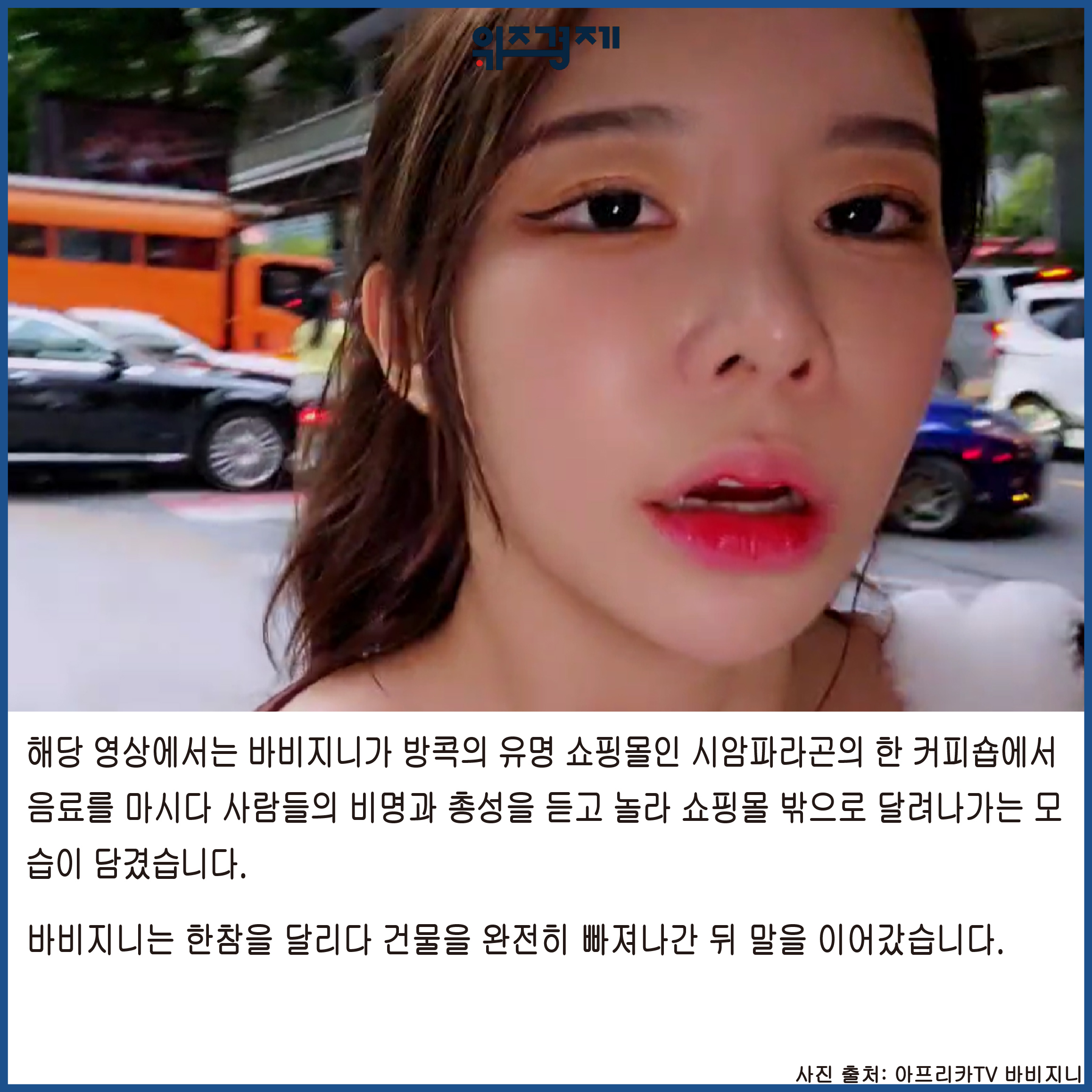 해당 영상에서는 바비지니가 방콕의 유명 쇼핑몰인 시암파라곤의 한 커피숍에서 음료를 마시다 사람들의 비명과 총성을