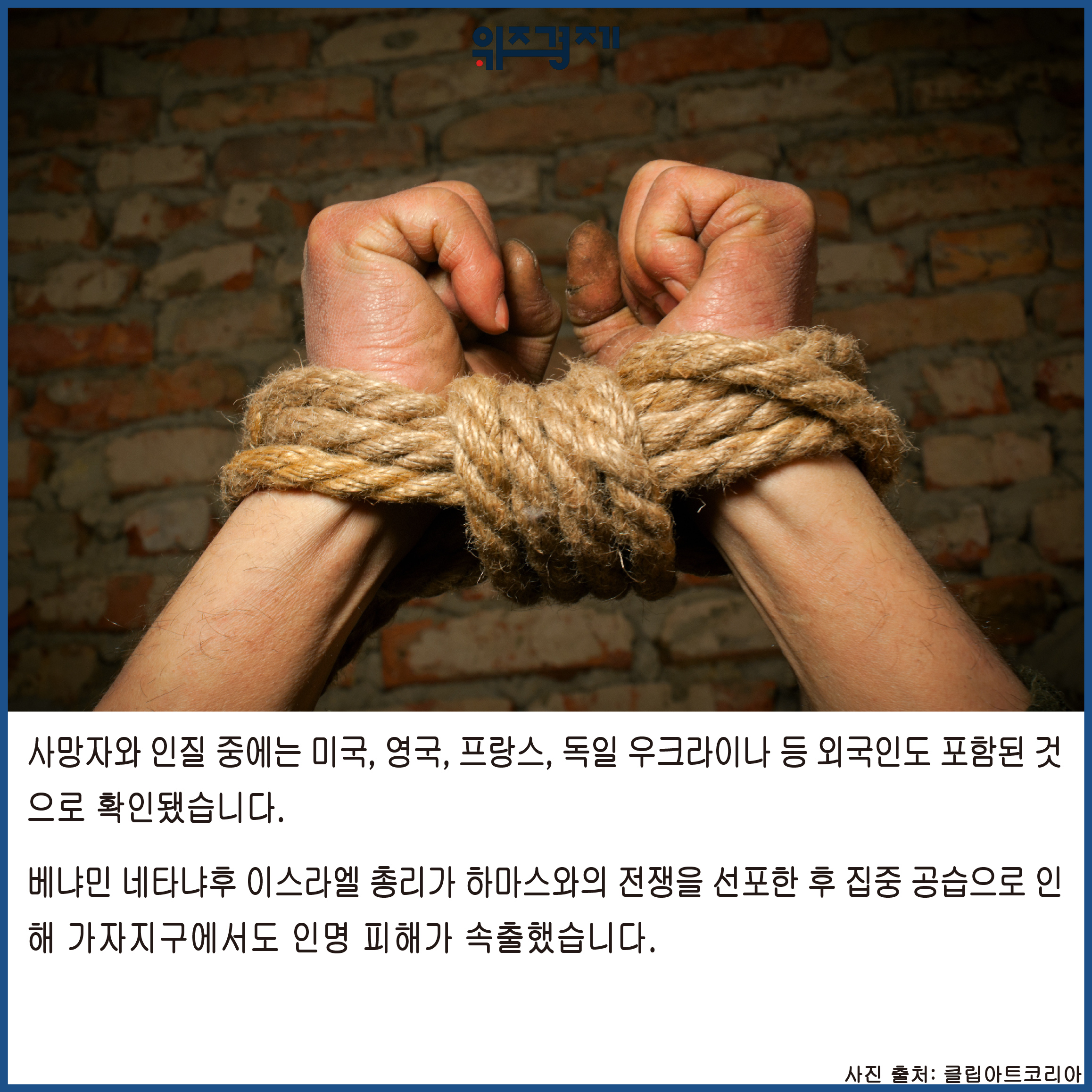앞서 하마스는 지난 7일 이스라엘 남부 지역에 침투해 수백 명의 민간인을