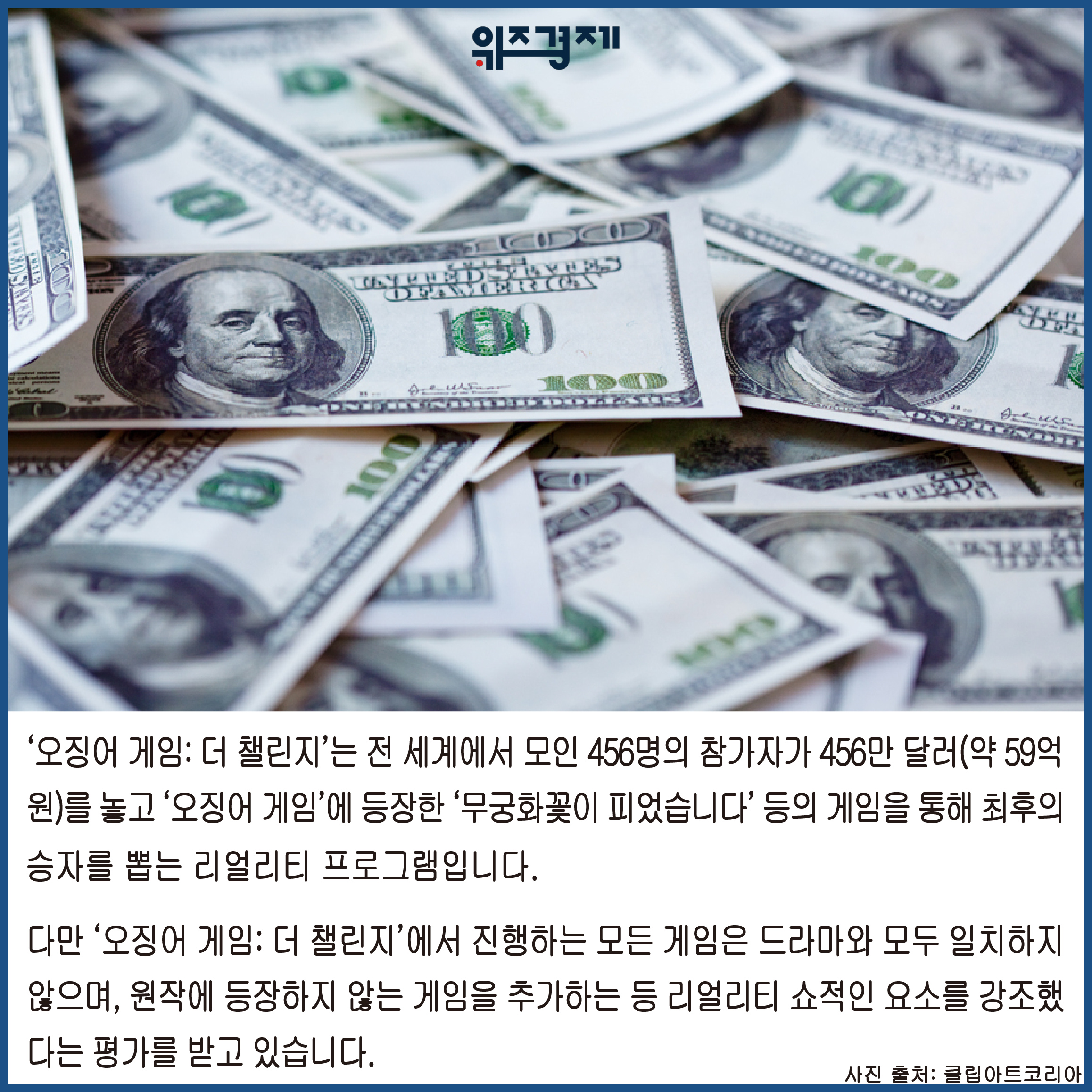 [위즈경제] 이정원 기자 =넷플릭스 인기 드라마 ‘오징어 게임’을 모티브로 한 리얼리티 쇼 ‘오징어 게임: 더 챌린지’가 공개된 가운데 촬영에 참가했던 참가자 중 부상을 입었다며, 제작사를 상대로 소송이 진행되고 있습니다.