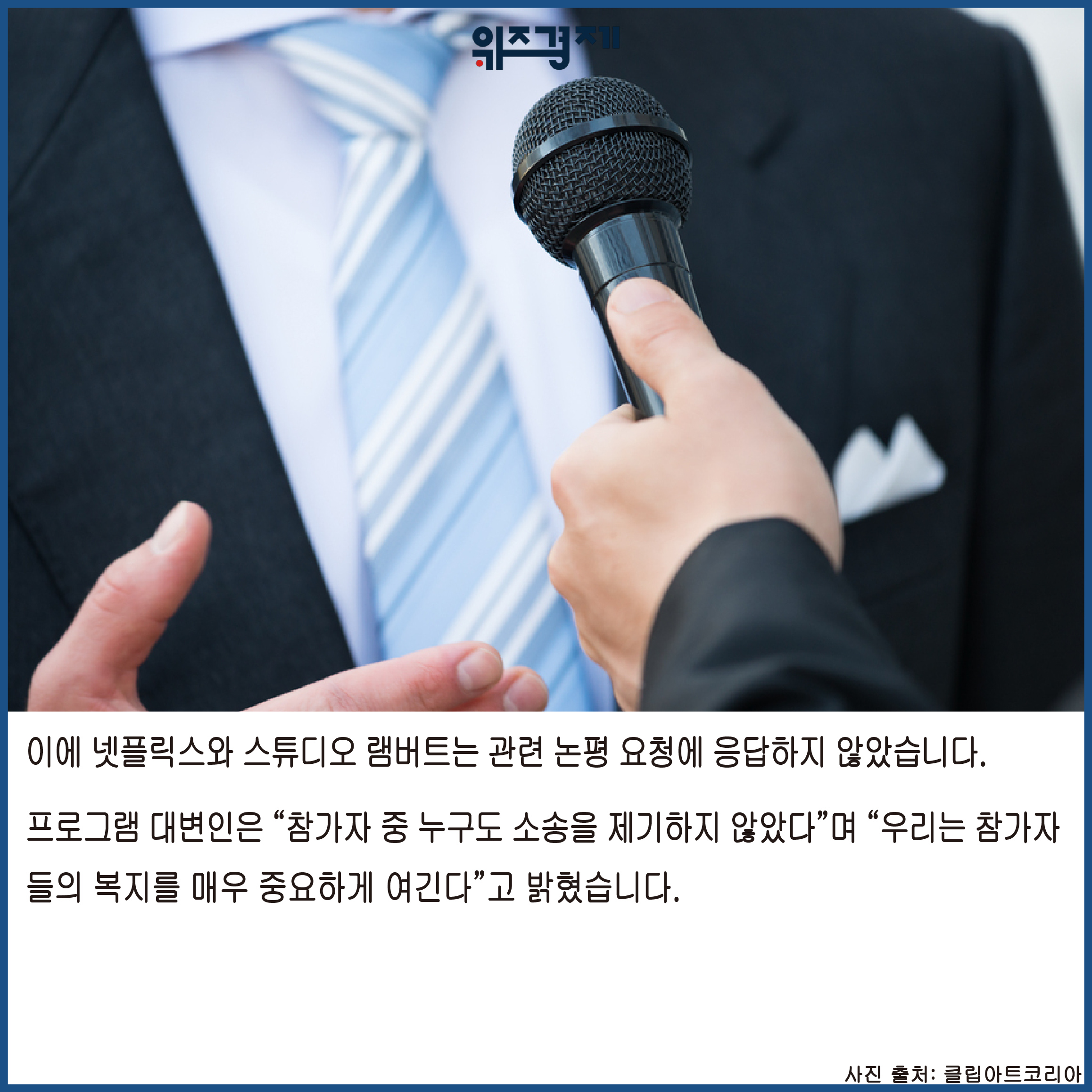 당시 넷플릭스는 참가자 456명 중 3명이 치료받았음을 알리면서, 심각한 부상을 입었다는 주장에는 “사실이 아니다”라고 밝혔습니다.