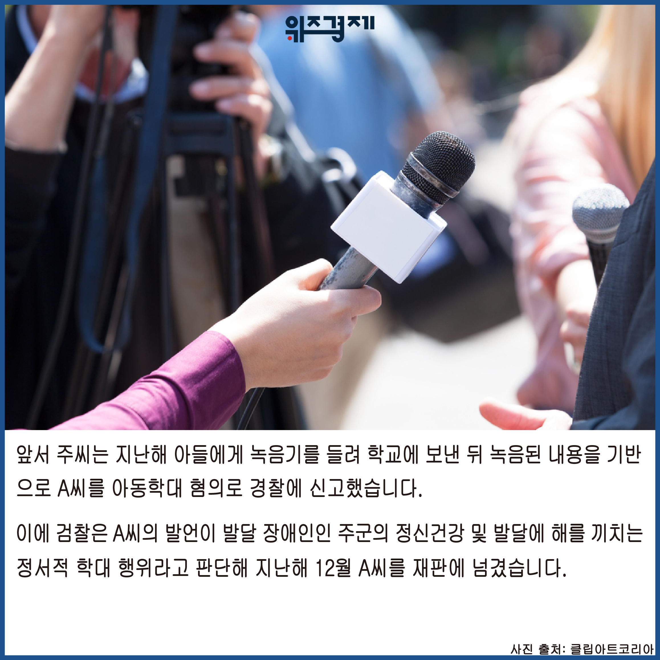 이에 검찰은 A씨의 발언이 발달 장애인인 주군의 정신건강 및 발달에