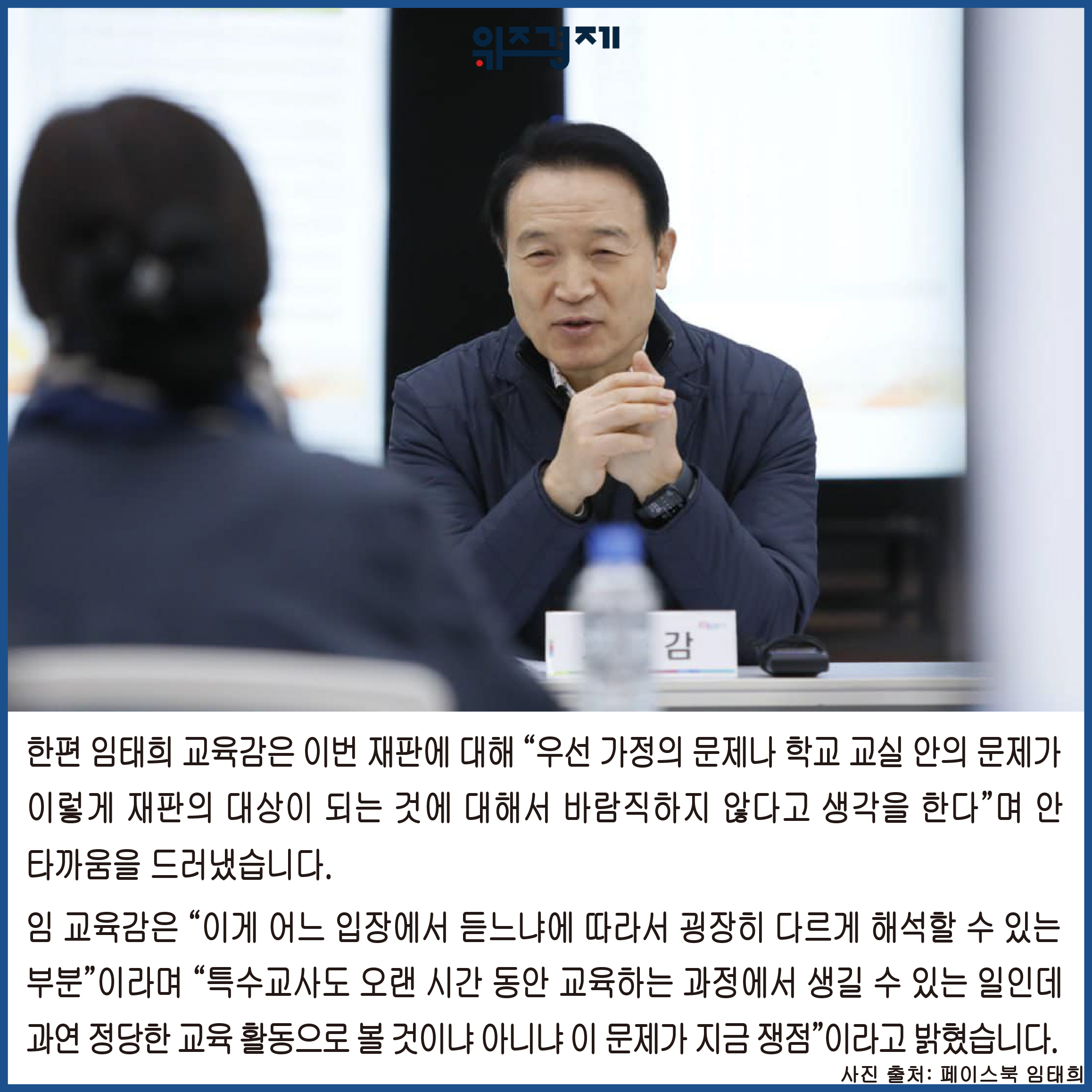 한편 임태희 교육감은 이번 재판에 대해 “우선 가정의 문제나