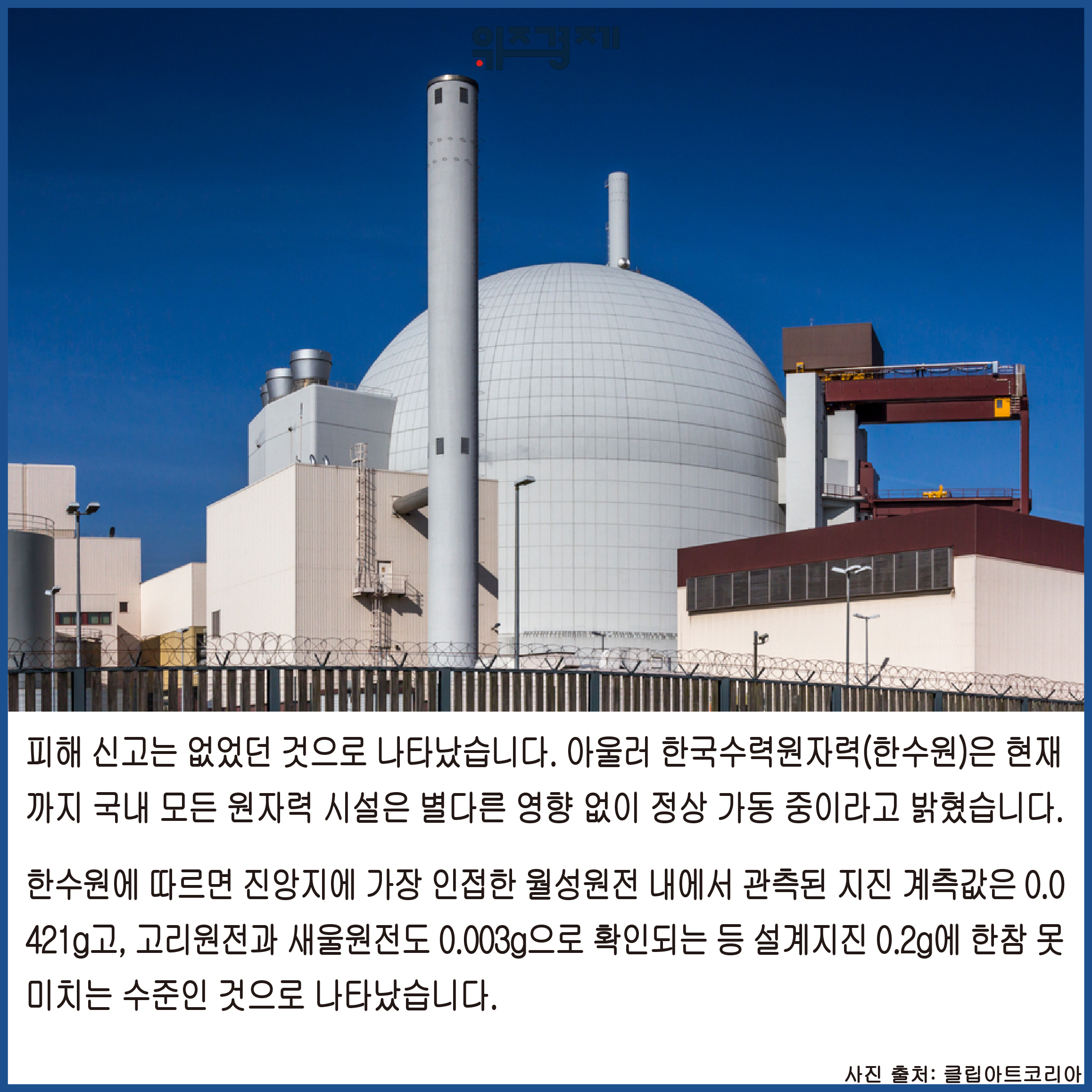 한수원에 따르면 진앙지에 가장 인접한 월성원전 내에서 관측된 지진 계측값은 0.0421g고, 고리원전과 새울원전도 0.003g으로 확인되는 등 설계지진 0.2g에 한참 못 미치는 수준인 것으로 나타났습니다.