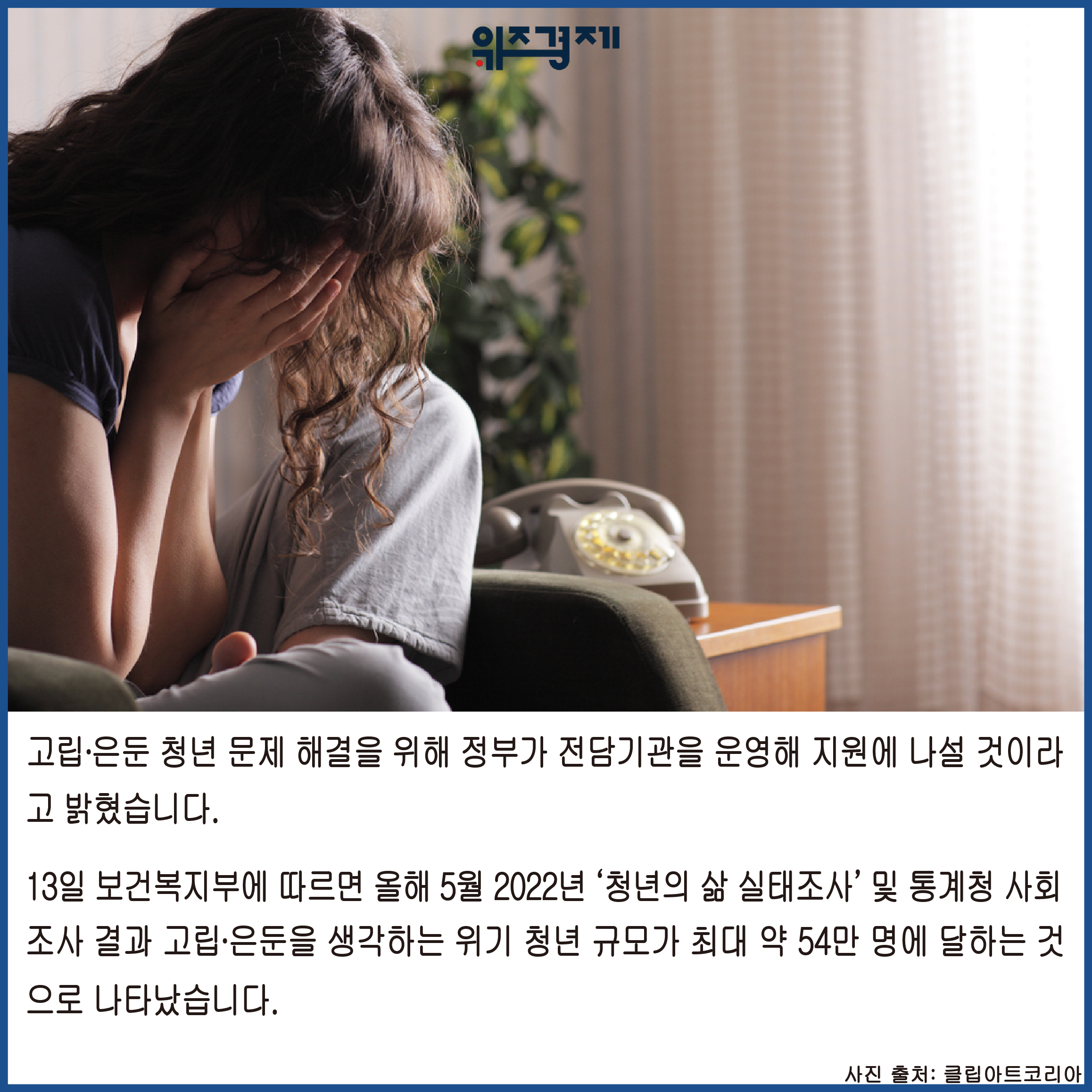 [위즈경제] 이정원 기자 =고립∙은둔 청년 문제 해결을 위해 정부가 전담기관을 운영해 지원에 나설 것이라고 밝혔습니다.