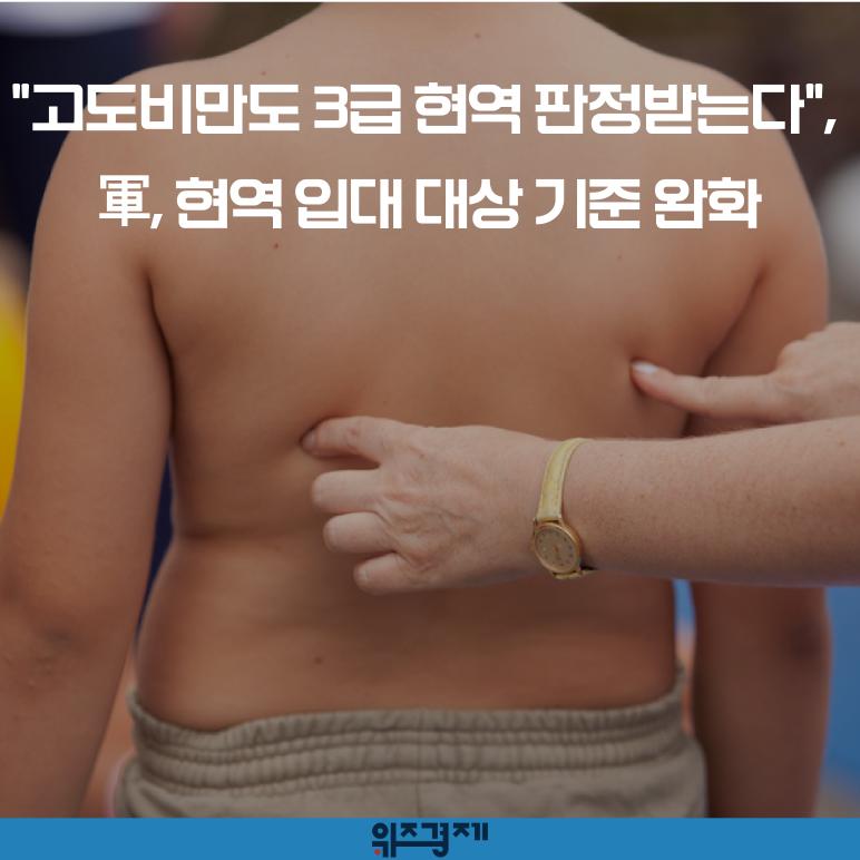 따라 개정안이 입법예고 기간을 거쳐 국무회의를 통과하면 지금까지 4급 사회복무요원 판정을 받았던 고도비만(35~39.9) 인원은 앞으로 모두 3급 현역 판정을 받게 됩니다.