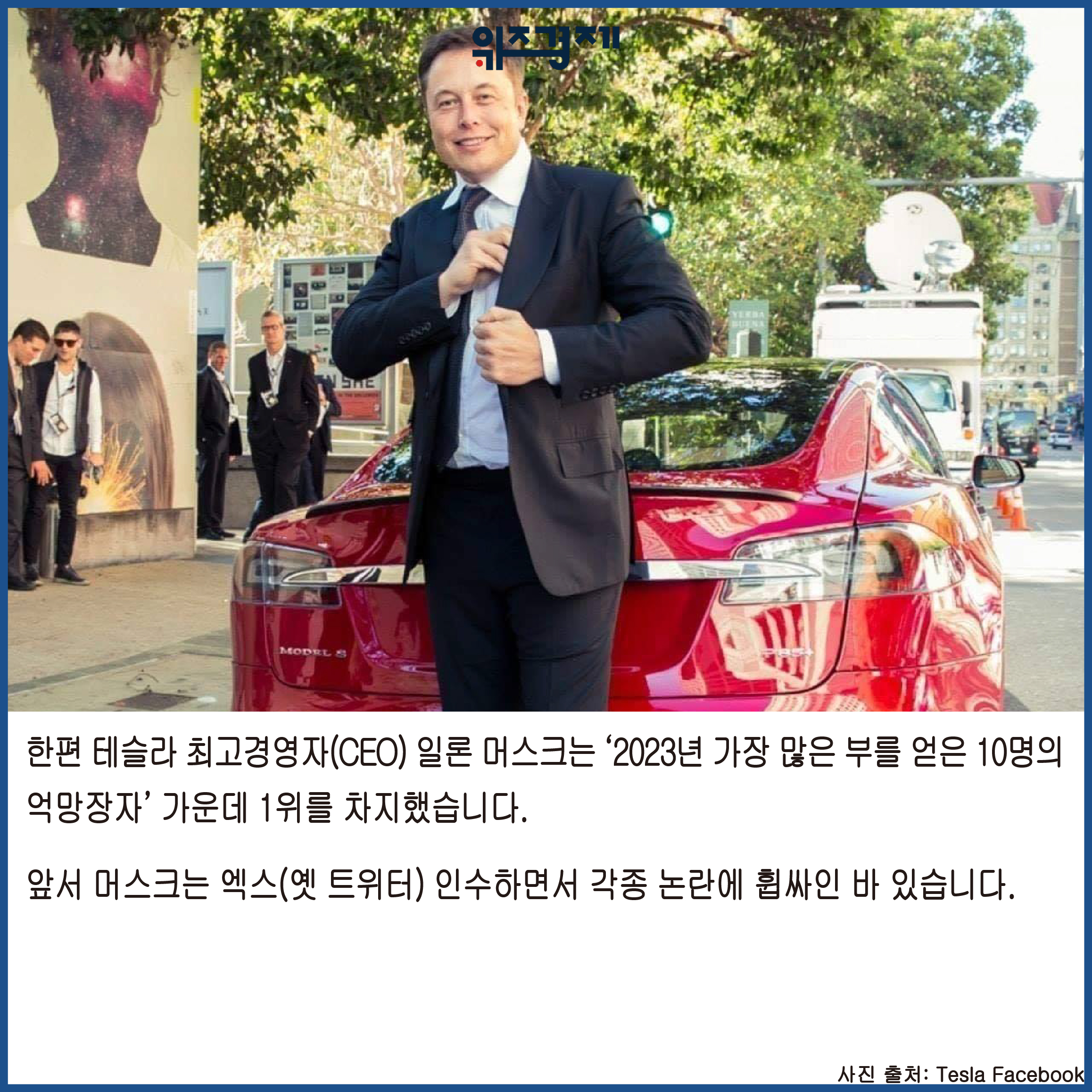 한편 테슬라 최고경영자(CEO) 일론 머스크는 ‘2023년 가장 많은 부를 얻은 10명의 억망장자’ 가운데 1위를 차지했습니다.