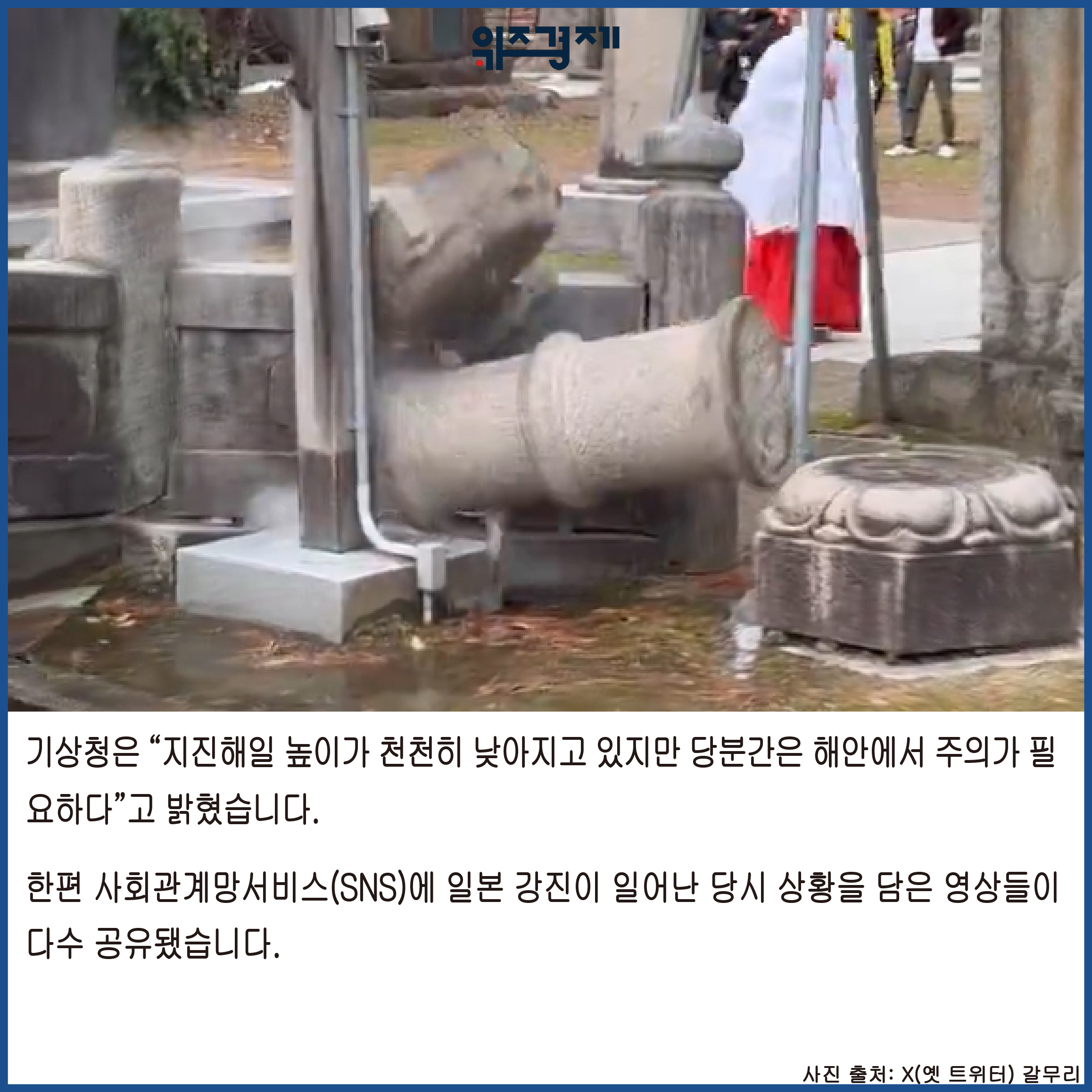 [위즈경제] 이정원 기자 =기상청이 2일 일본에서 발생한 규모 7.6 강진으로 인한 지진해일이 우리나라 동해안으로 밀려왔다고 2일 밝혔습니다.