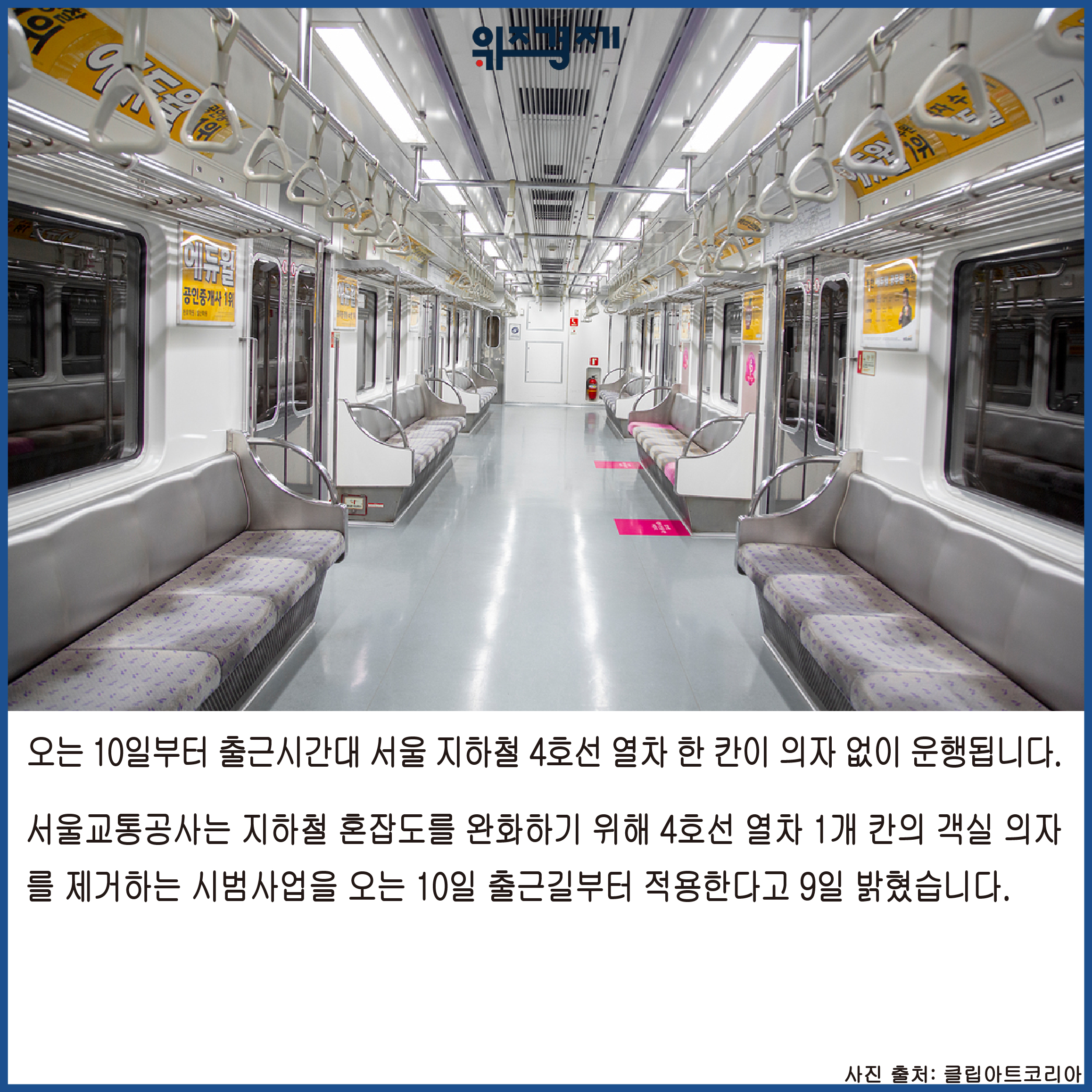 [위즈경제] 이정원 기자 =오는 10일부터 출근시간대 서울 지하철 4호선 열차 한 칸이 의자 없이 운행됩니다.