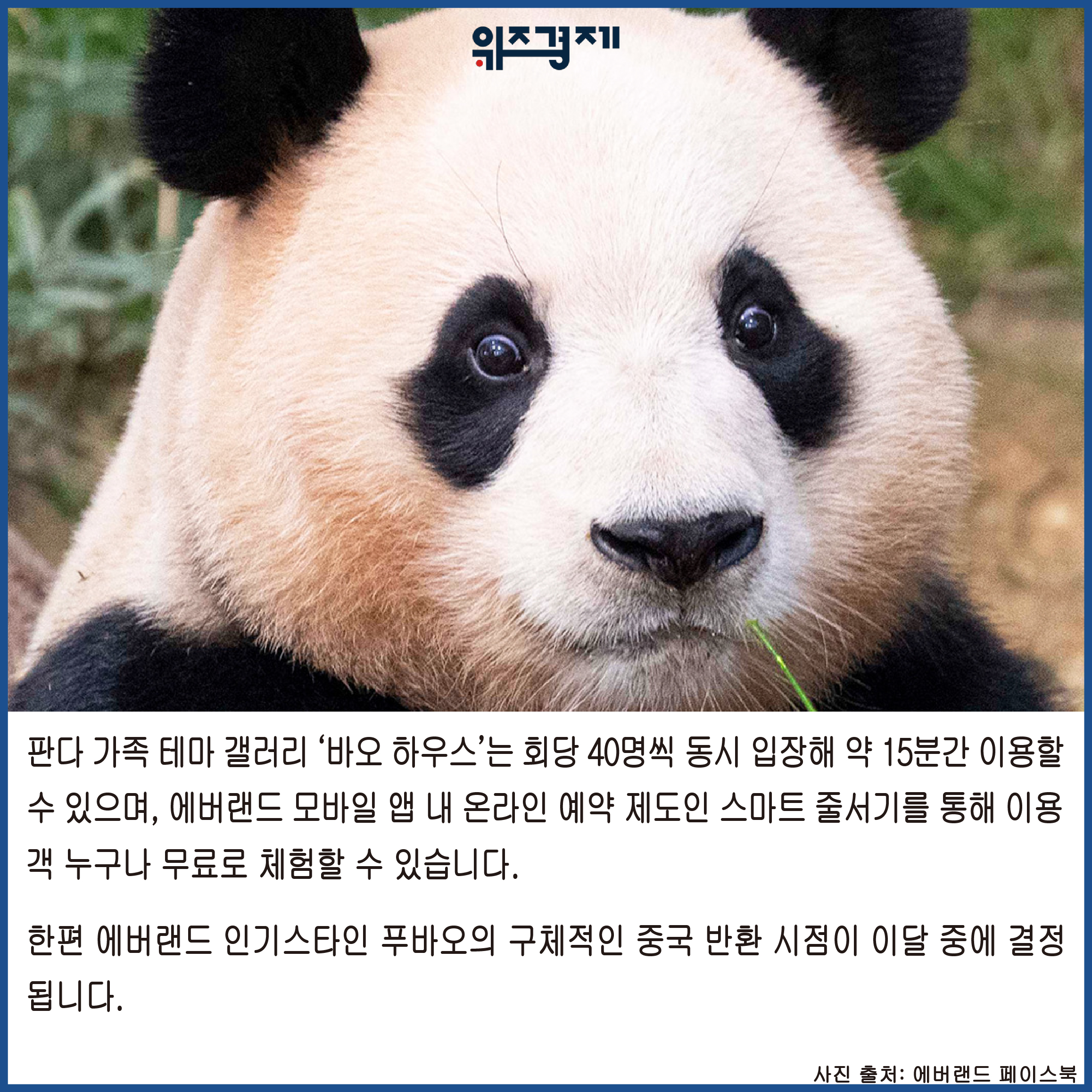 [위즈경제] 이정원 기자 =삼성물산 리조트부문(사장 정해린)이 운영하는 에버랜드가 오는 20일 판다 가족을 새롭게 경험할 수 있는 테마 체험 갤러리 ‘바오 하우스(BAO HAUS)’를 오픈한다고 17일 밝혔습니다.