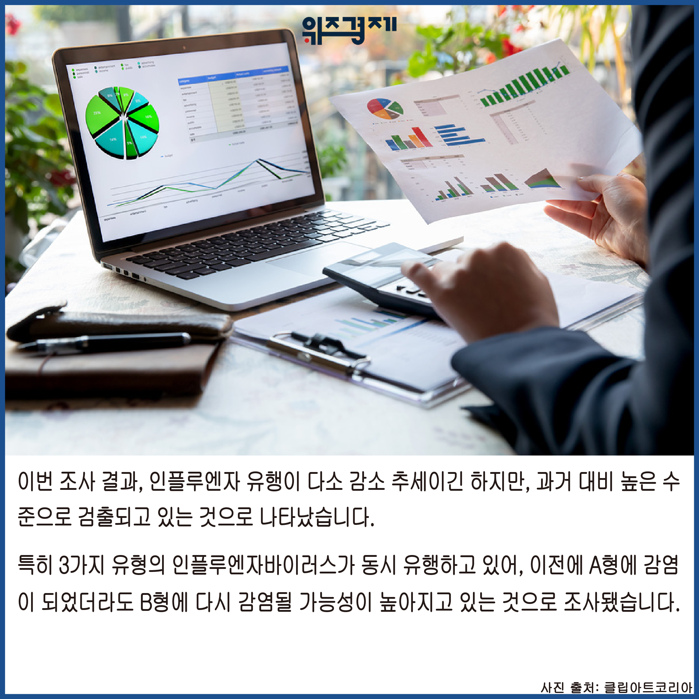 이번 조사 결과, 인플루엔자 유행이 다소 감소 추세이긴 하지만, 과거 대비 높은 수준으로 검출되고 있는 것으로 나타났습니다.