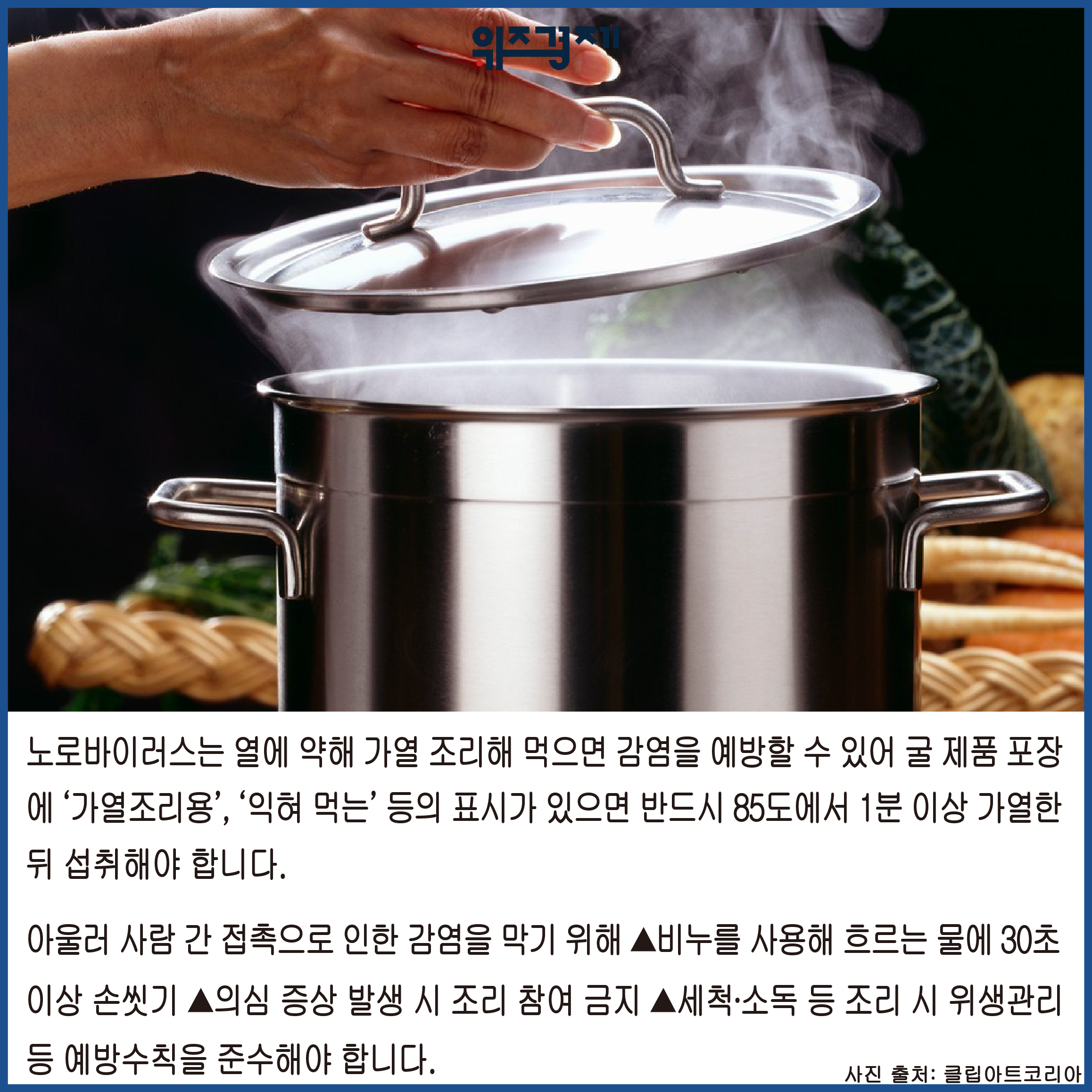 노로바이러스는 열에 약해 가열 조리해 먹으면 감염을 예방할 수 있어 굴 제품 포장에 ‘가열조리용’, ‘익혀 먹는’ 등의