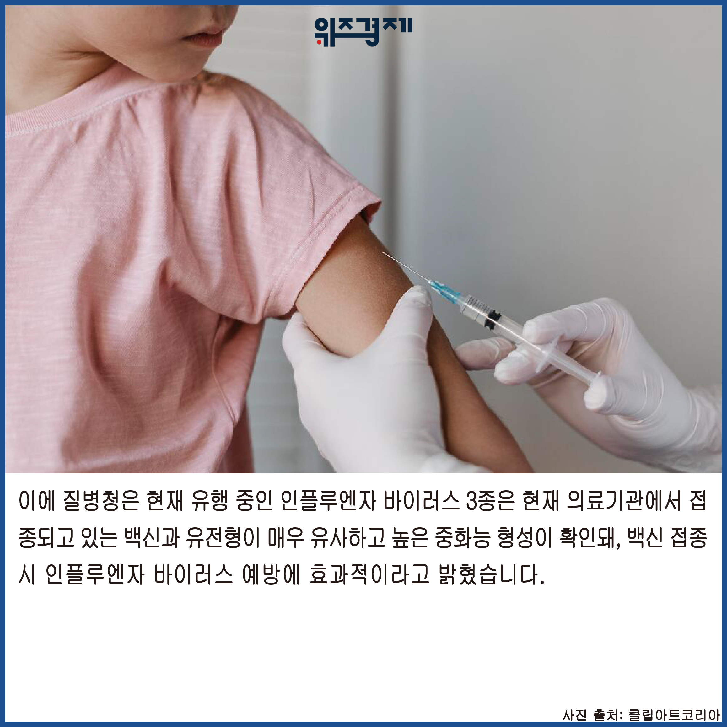 이에 질병청은 현재 유행 중인 인플루엔자 바이러스 3종은 현재 의료기관에서