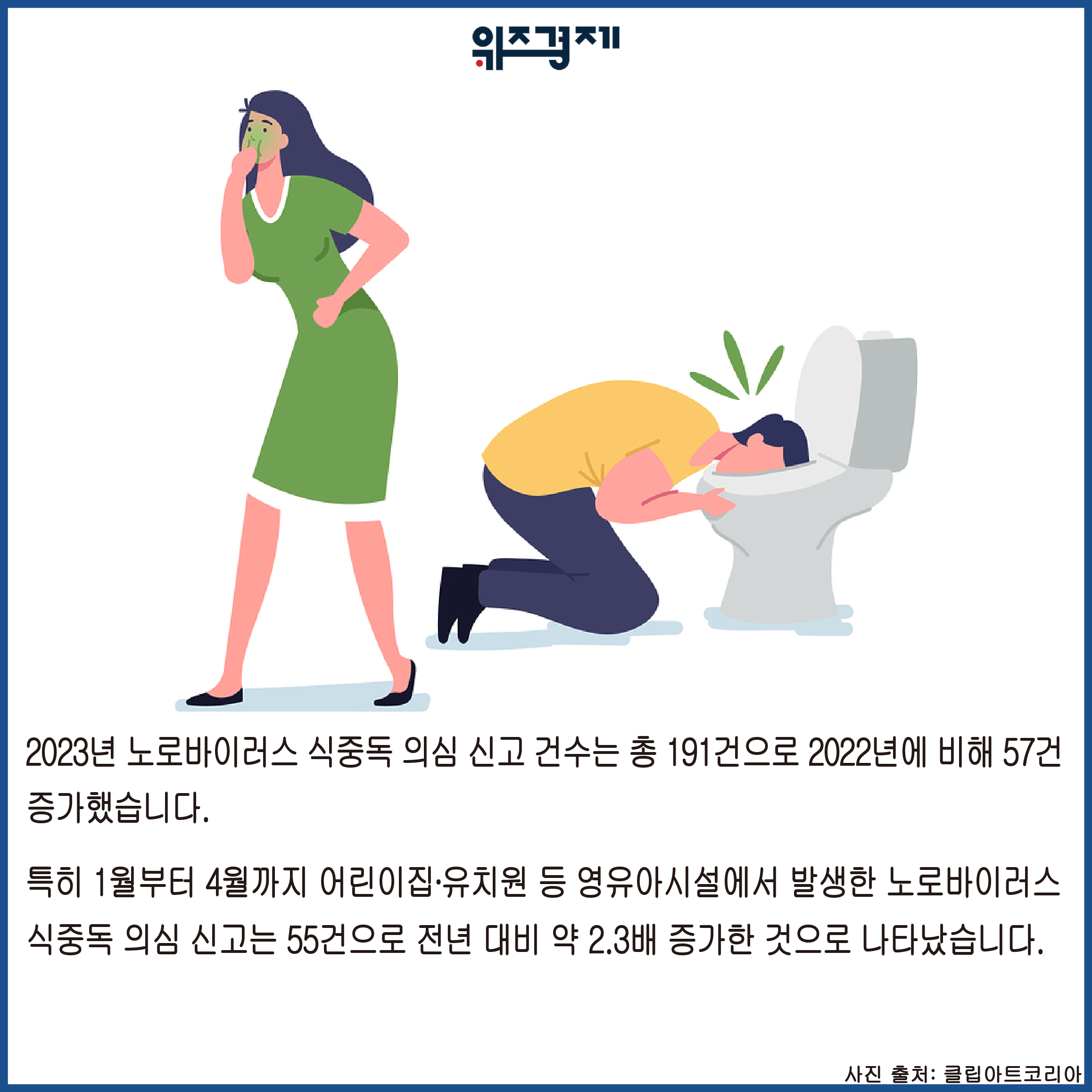 2023년 노로바이러스 식중독 의심 신고 건수는 총 191건으로 2022년에 비해 57건