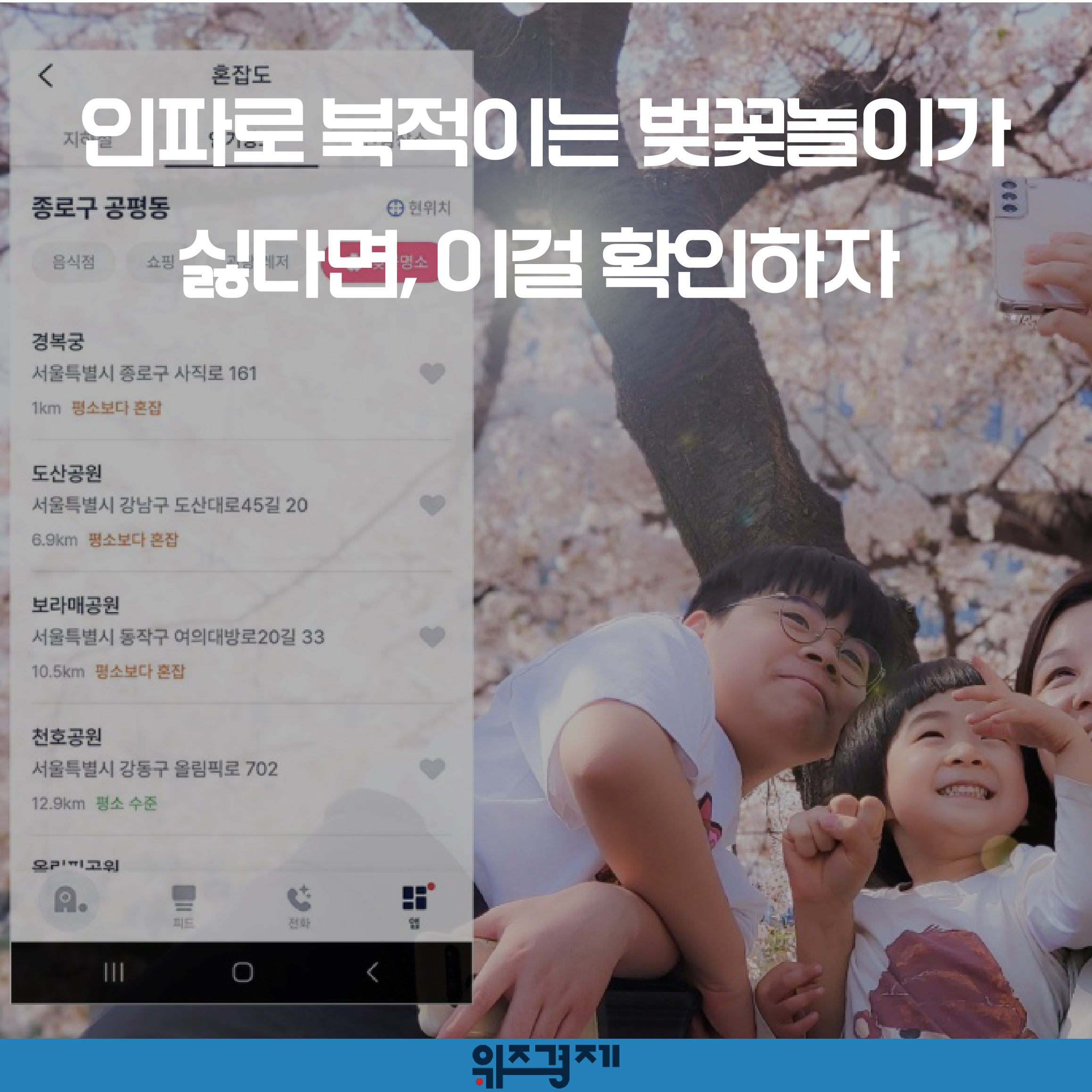 [위즈경제] 이정원 기자 =벚꽃놀이 시즌이 다가오는 가운데, SK텔레콤은 AI 개인비서 ‘에이닷’에 벚꽃 명소 혼잡도 정보를 추가해 공개한다고 25일 밝혔습니다.