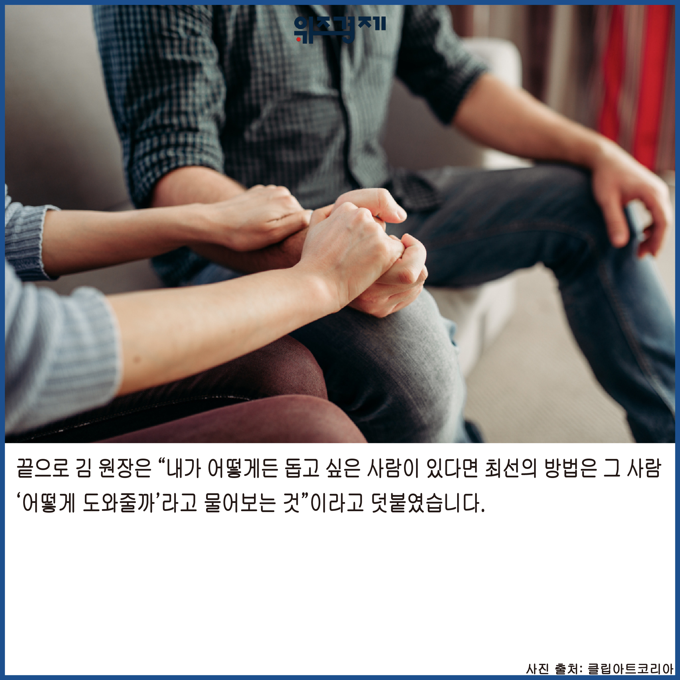 끝으로 김 원장은 “내가 어떻게든 돕고 싶은 사람이 있다면