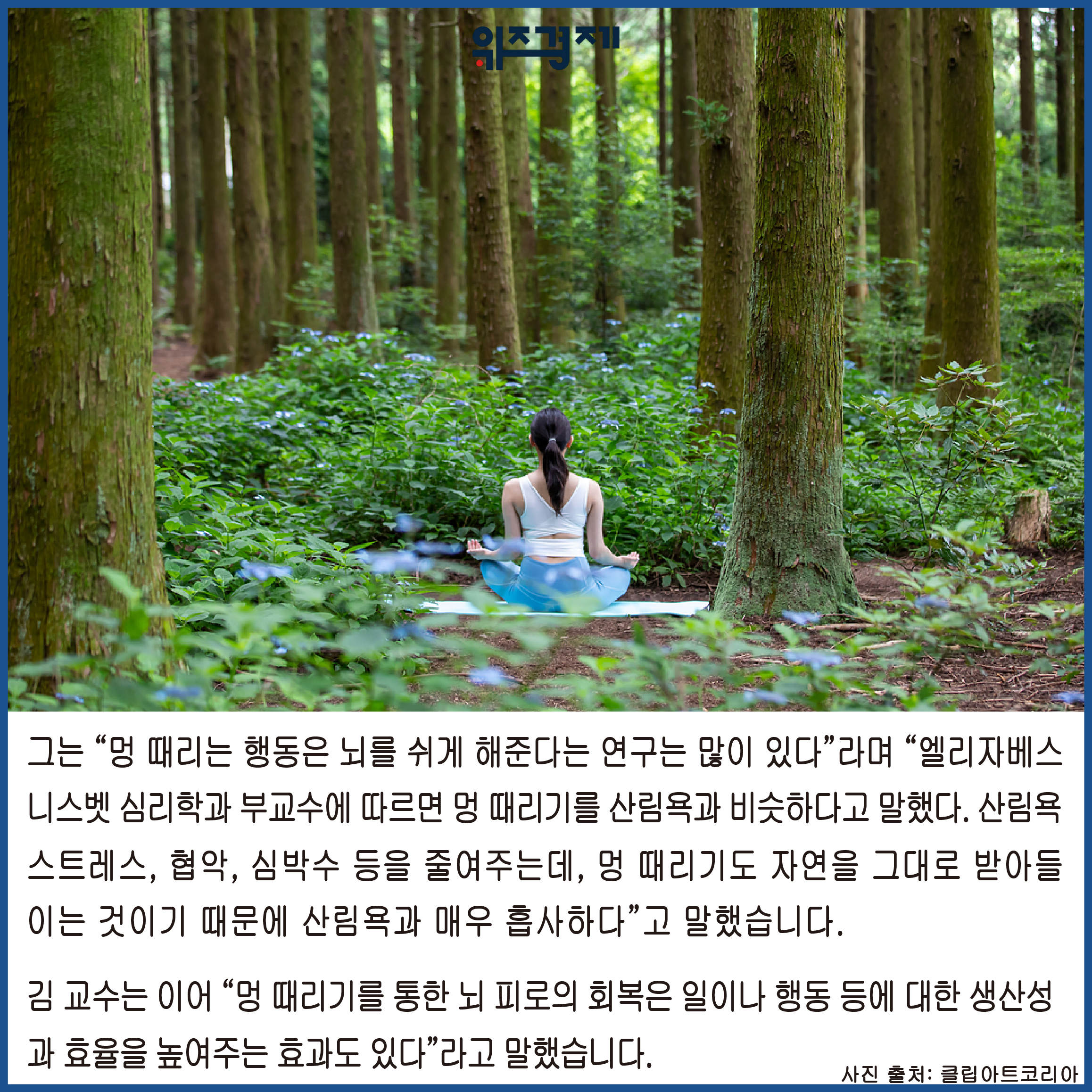 김 교수는 이어 “멍 때리기를 통한 뇌 피로의 회복은 일이나 행동 등에 대한 생산성과 효율을 높여주는 효과도 있다”라고 말했습니다.