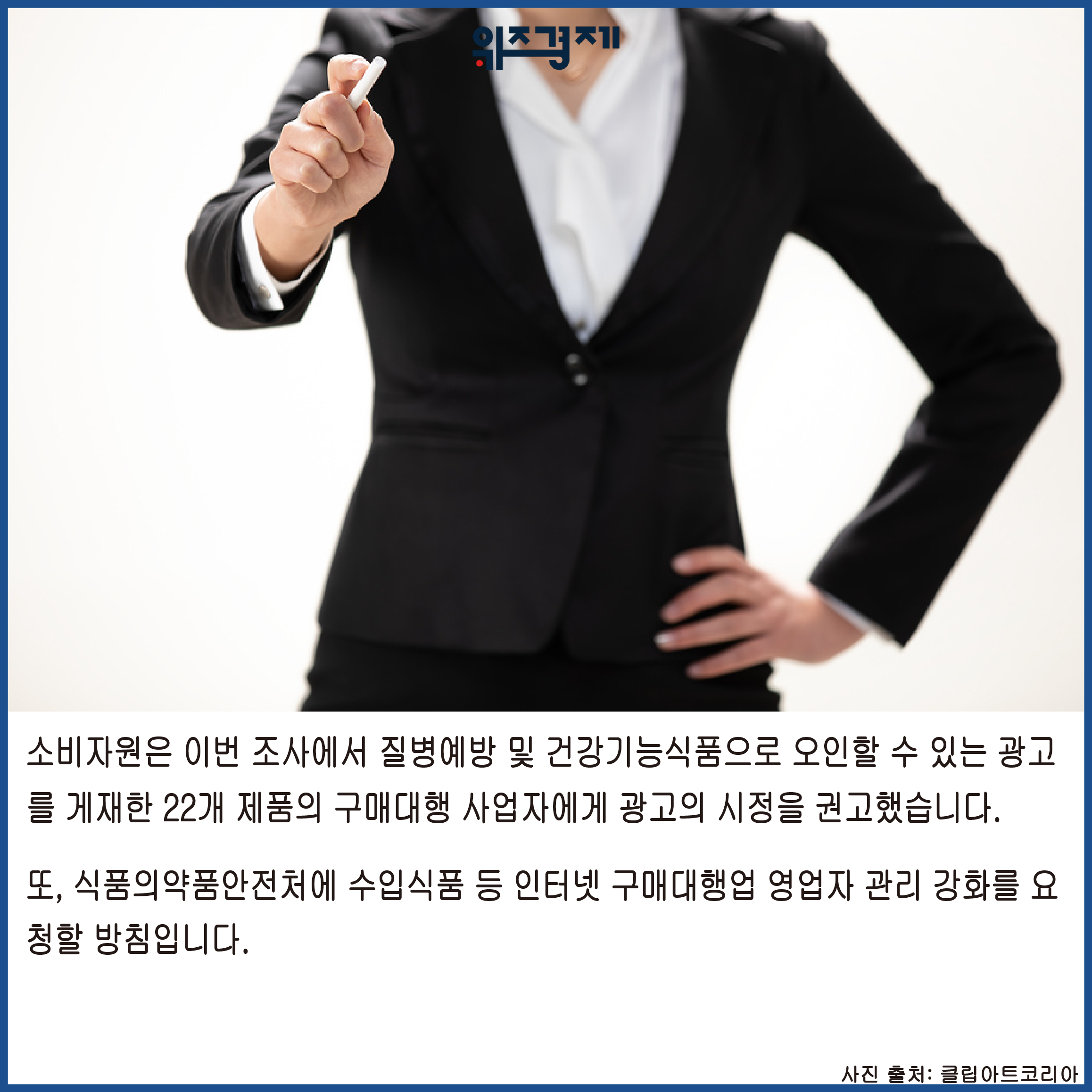소비자원은 이번 조사에서 질병예방 및 건강기능식품으로 오인할 수 있는 광고를 게재한 22개 제품의 구매대행 사업자에게 광고의 시정을 권고했습니다.