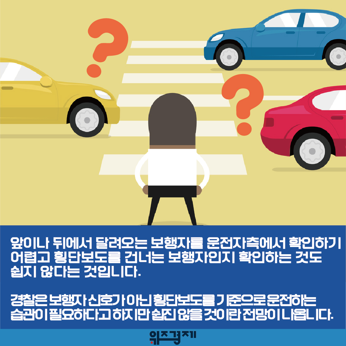 경찰은 보행자 신호가 아닌 횡단보도를 기준으로 운전하는 습관이 필요하다고 하지만 쉽진 않을 것이란 전망이 나옵니다.