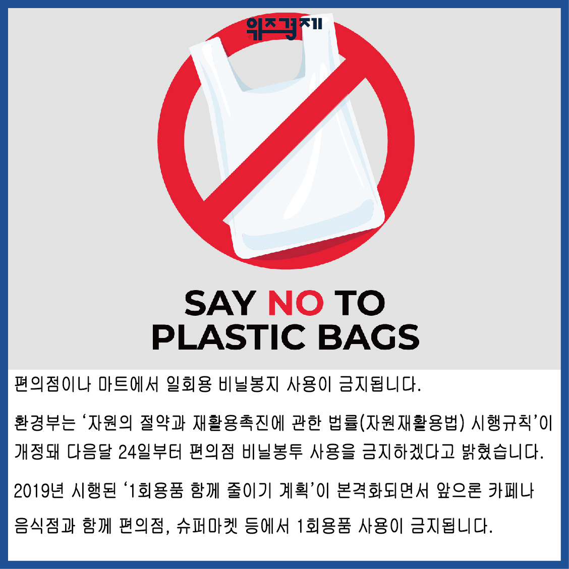 편의점이나 마트에서 일회용 비닐봉지 사용이 금지됩니다.