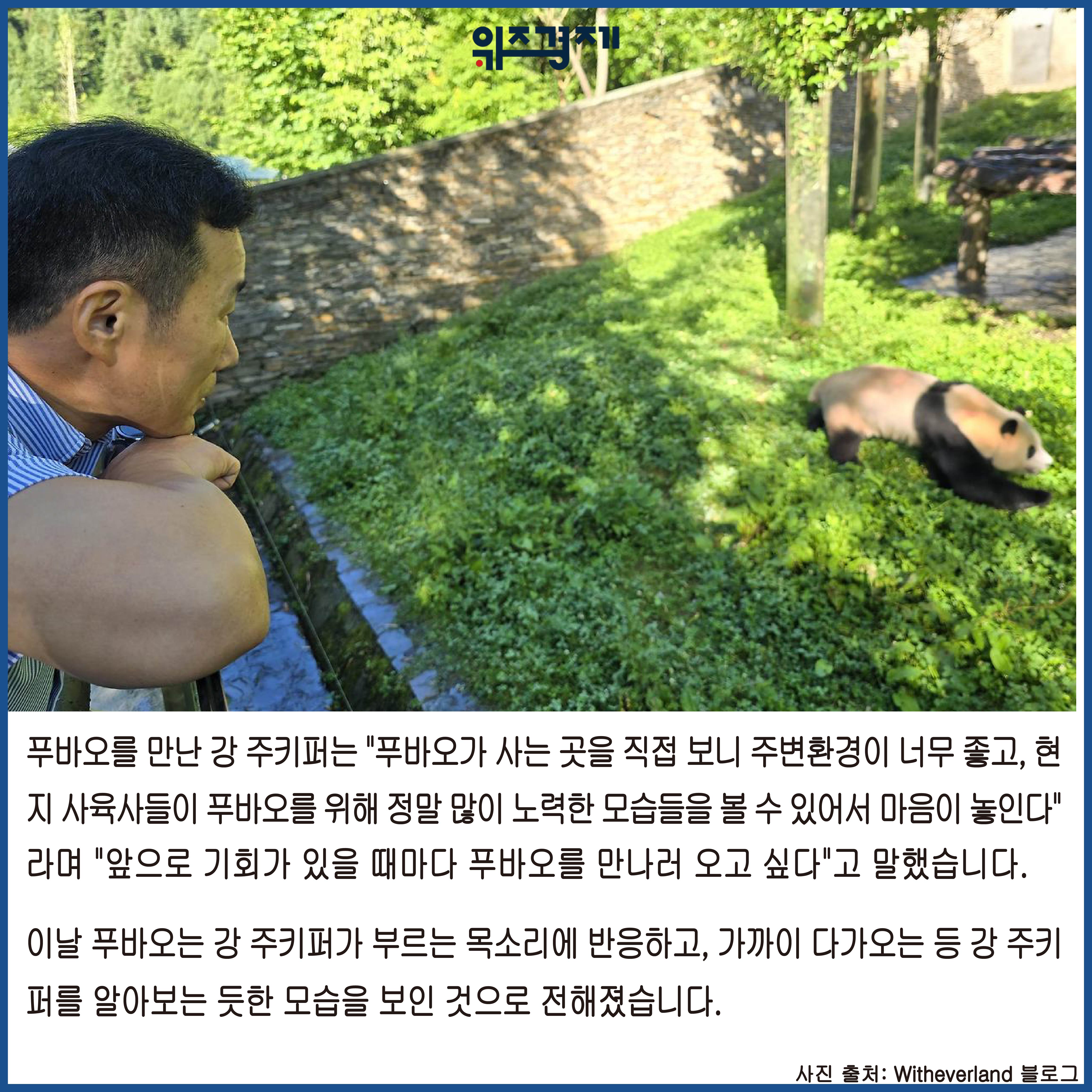이날 푸바오는 강 주키퍼가 부르는 목소리에 반응하고, 가까이 다가오는 등 강 주키퍼를 알아보는 듯한 모습을 보인 것으로 전해졌습니다.