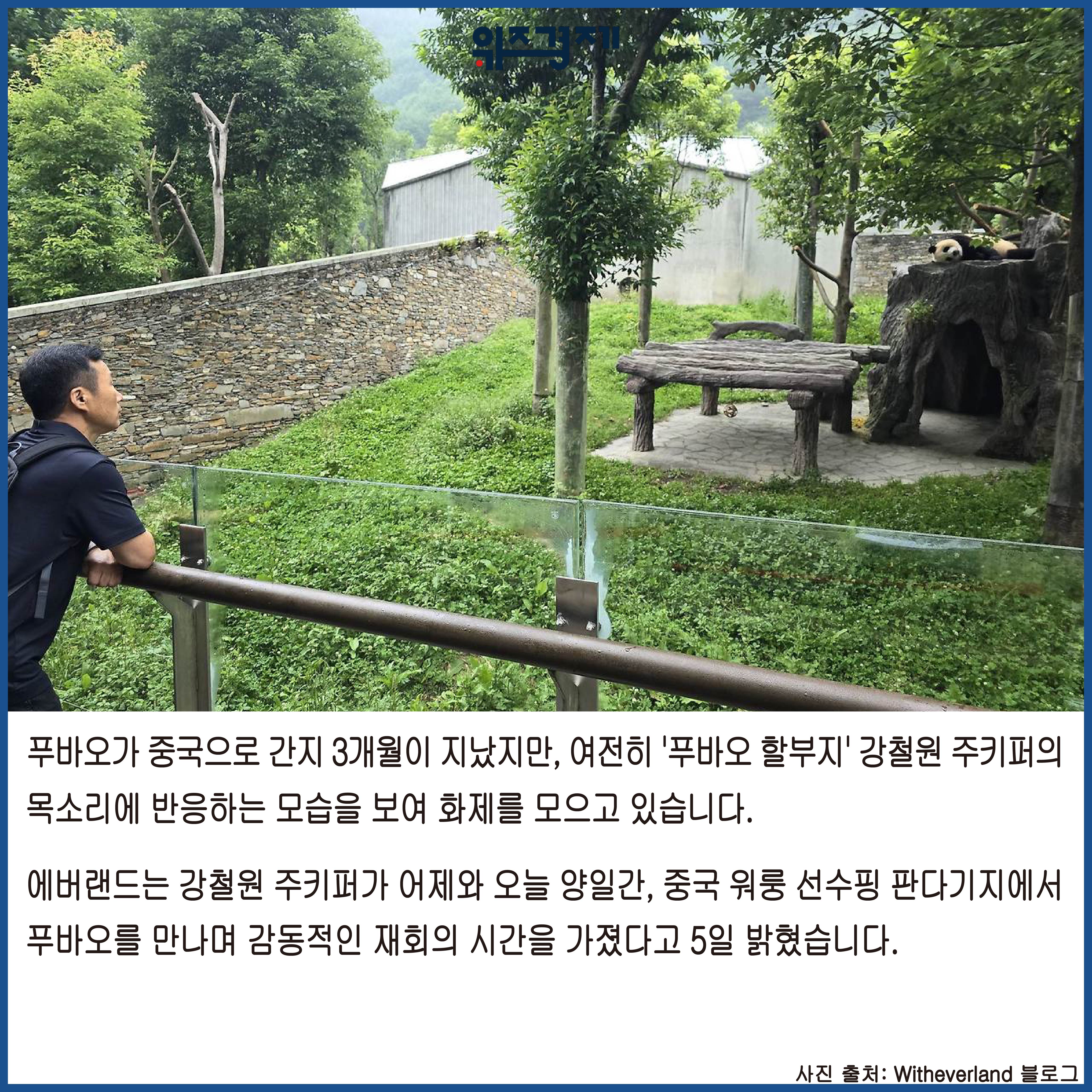 에버랜드는 강철원 주키퍼가 어제와 오늘 양일간, 중국 워룽 선수핑 판다기지에서 푸바오를 만나며 감동적인 재회의 시간을 가졌다고 5일 밝혔습니다.