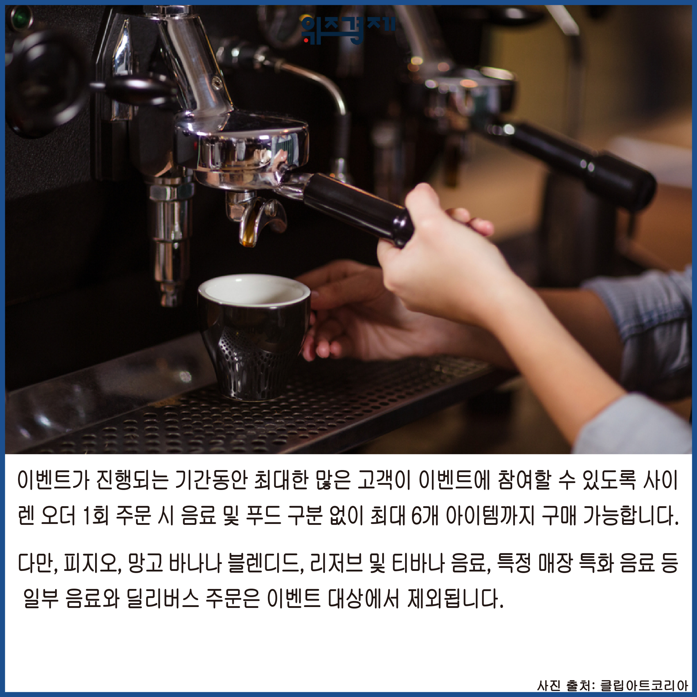 등 일부 음료와 딜리버스 주문은 이벤트 대상에서 제외됩니다.