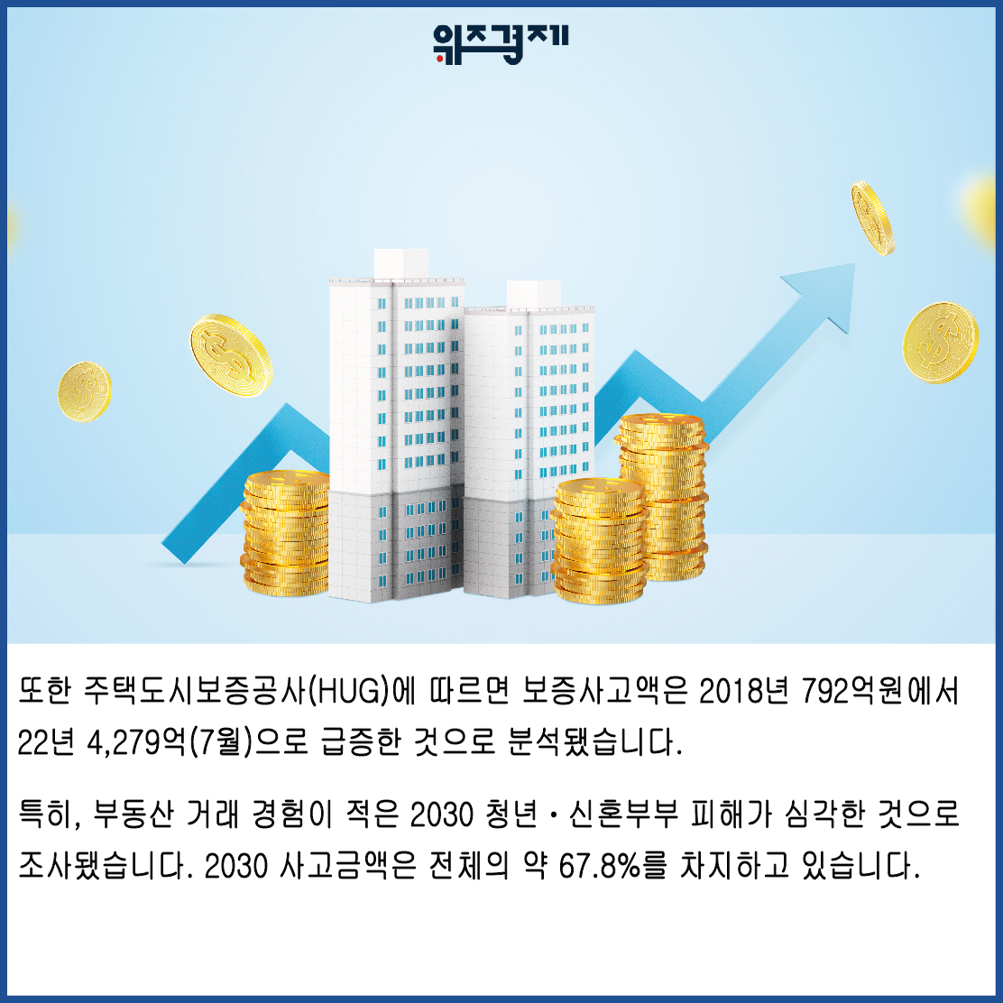또한 주택도시보증공사(HUG)에 따르면 보증사고액은 2018년 792억원에서 22년 4,279억(7월)으로