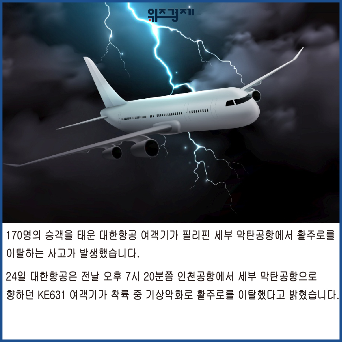 [위즈경제] 이정원 기자 = 170명의 승객을 태운 대한항공 여객기가 필리핀 세부 막탄공항에서