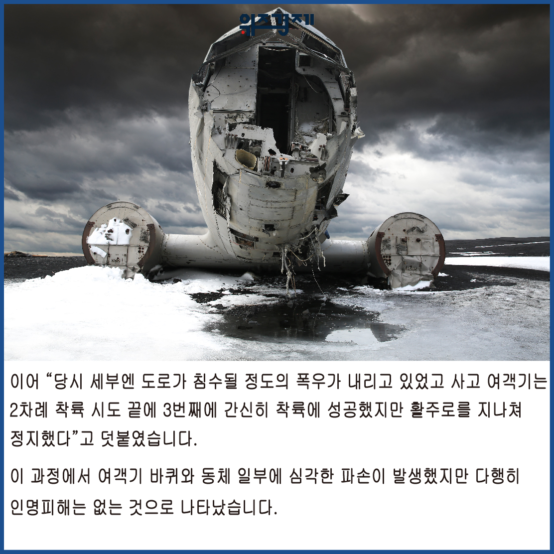 이 과정에서 여객기 바퀴와 동체 일부에 심각한 파손이 발생했지만 다행히 인명피해는 없는 것으로 나타났습니다.
