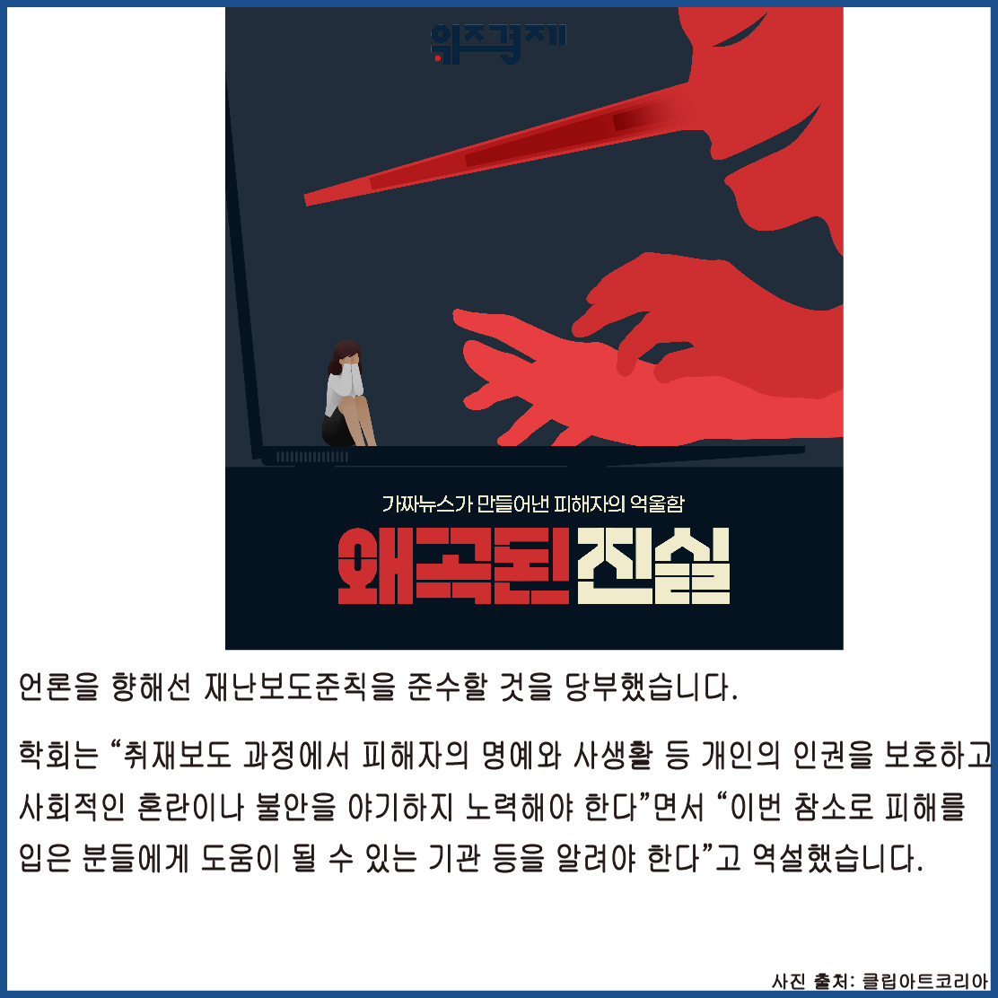 학회는 “취재보도 과정에서 피해자의 명예와 사생활 등 개인의 인권을