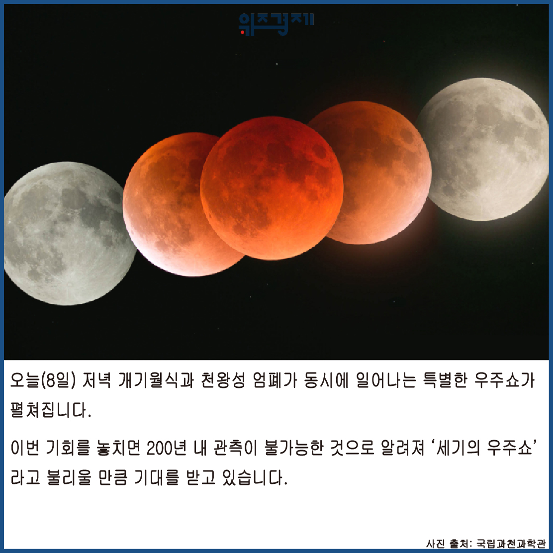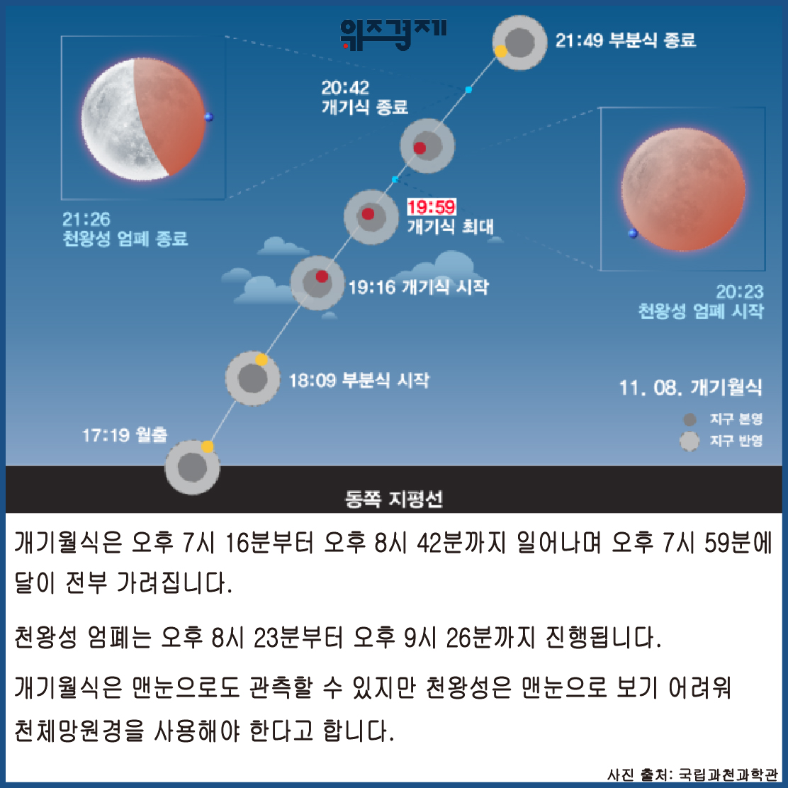 [위즈경제] 이정원 기자 = 오늘(8일) 저녁 개기월식과