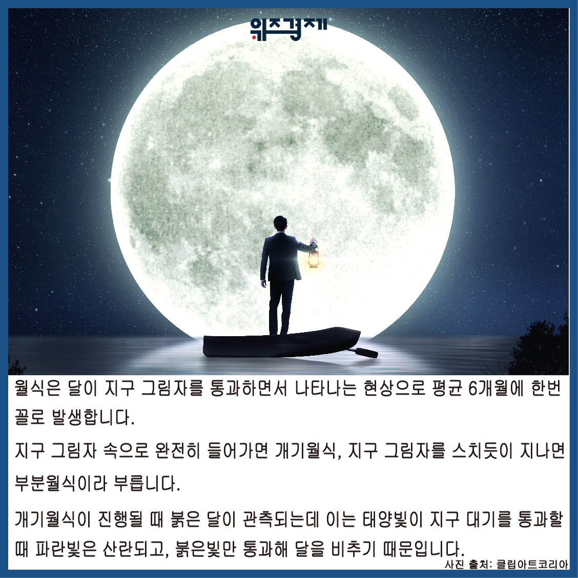 월식은 달이 지구 그림자를 통과하면서 나타나는 현상으로 평균 6개월에 한번 꼴로 발생합니다.