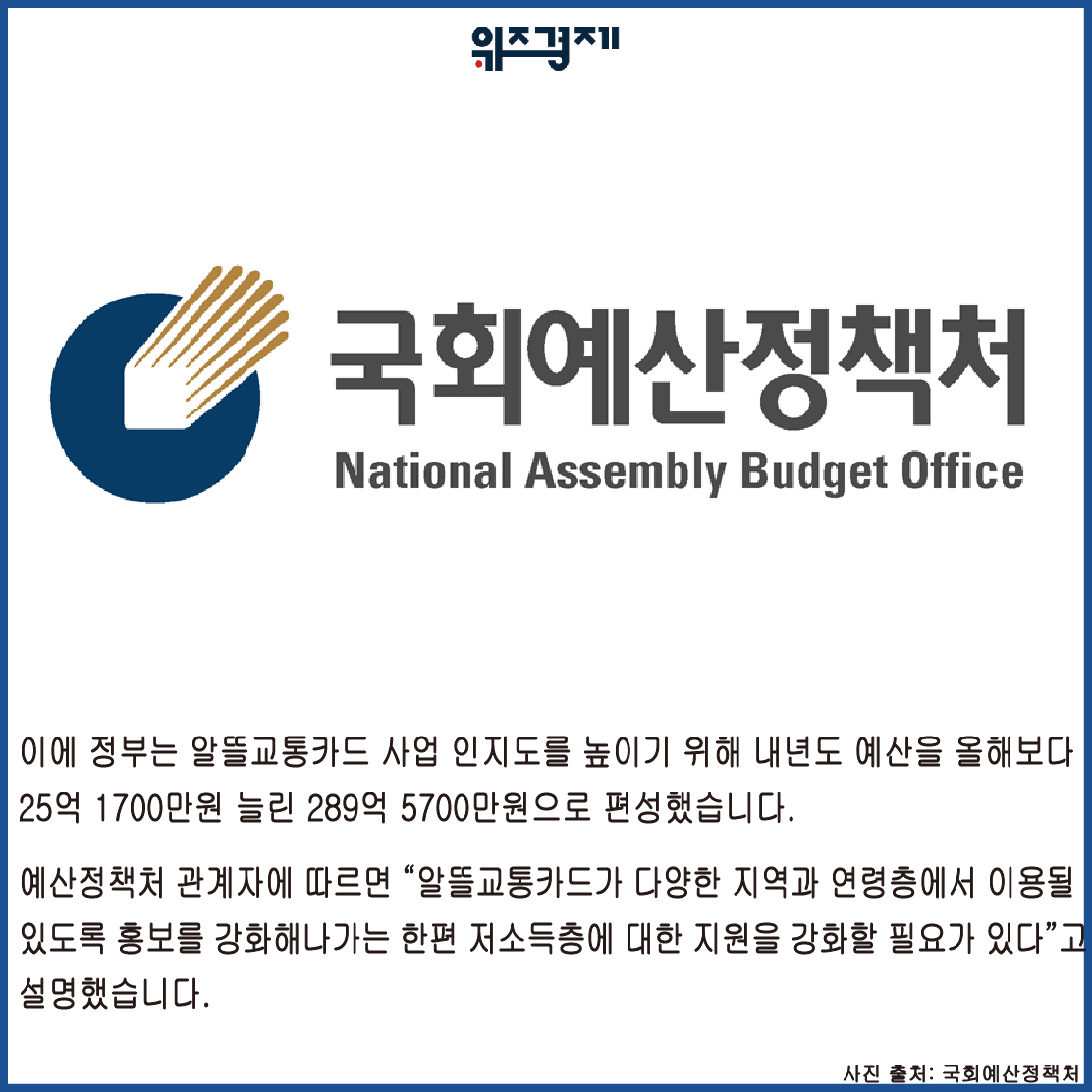 예산정책처 관계자에 따르면 “알뜰교통카드가 다양한 지역과 연령층에서